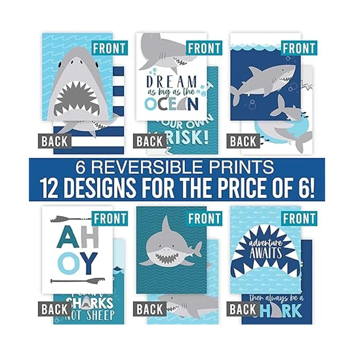 Decoración de fiesta de cumpleaños sin estrés; estos juegos de decoración de pared de tiburón de 8 x 10 pulgadas cuentan con 6 impresiones de arte reversibles de tiburón, por lo que obtienes un total de 12 diseños; impresiona a tu pequeño niño con suministros de fiesta de tiburón decoración marina que pondrá una sonrisa en su cara.
