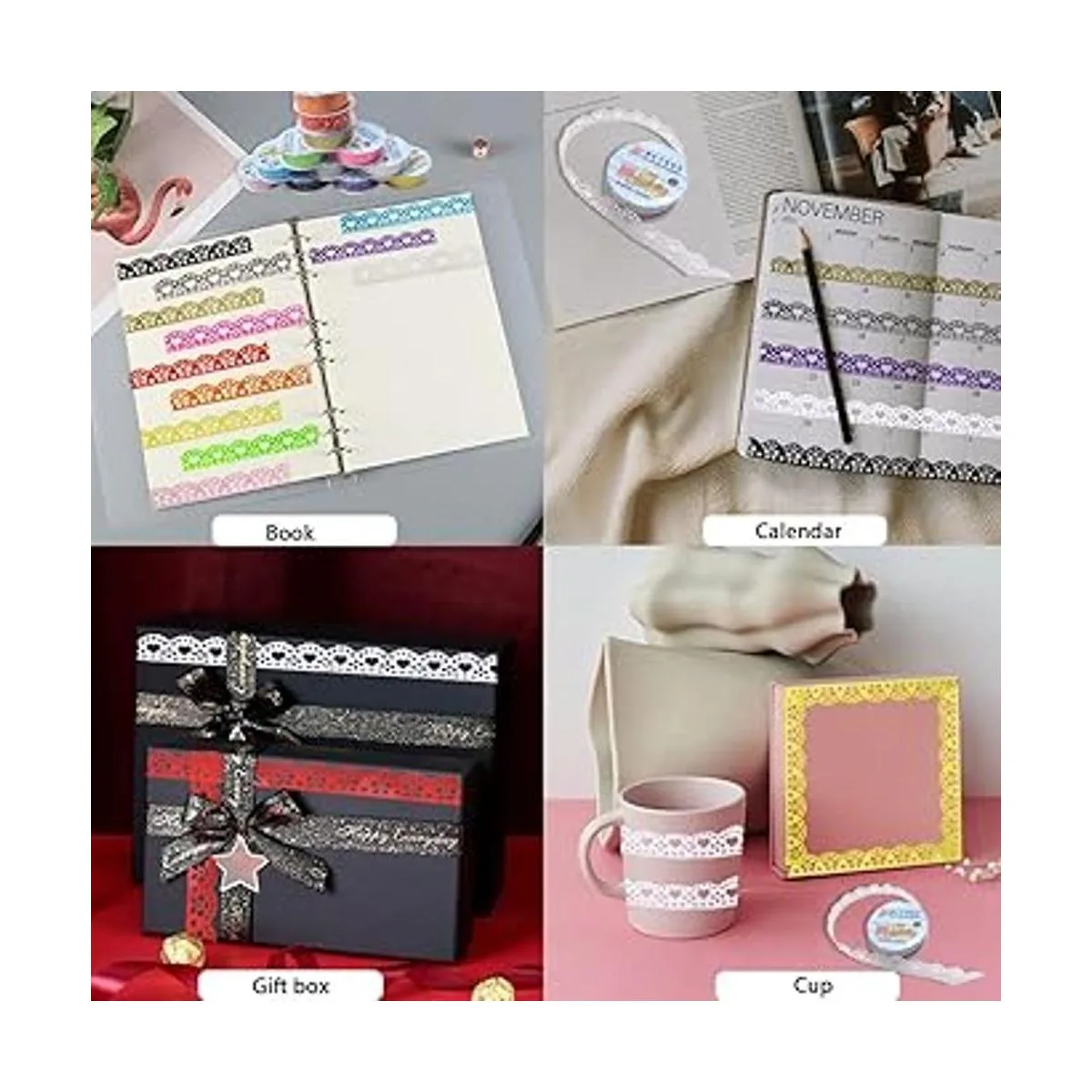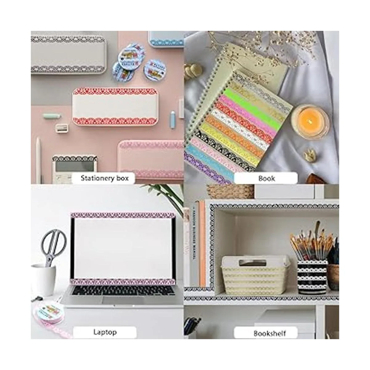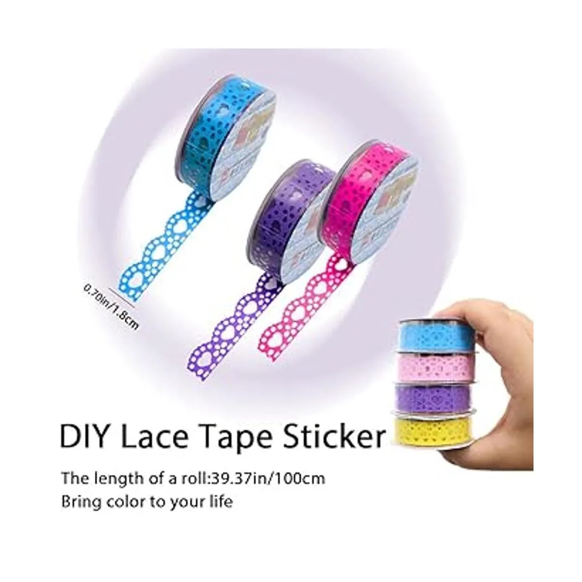 Material y tamaño: hechas de PVC, las calcomanías de cinta de encaje pueden ser duraderas con color de larga duración, buen adhesivo y bajos residuos. 0.630 in de ancho, 39.4 in de longitud cada rollo.