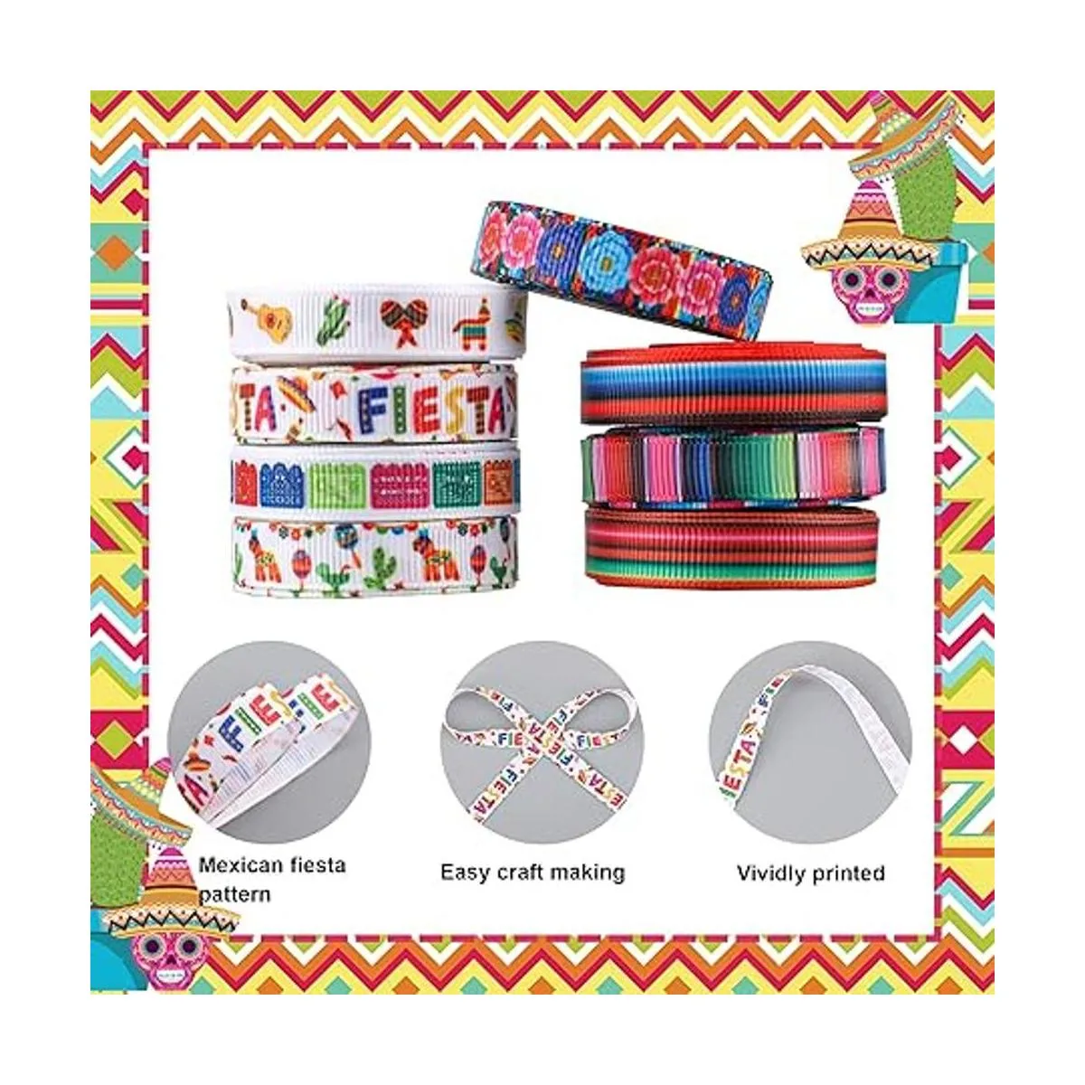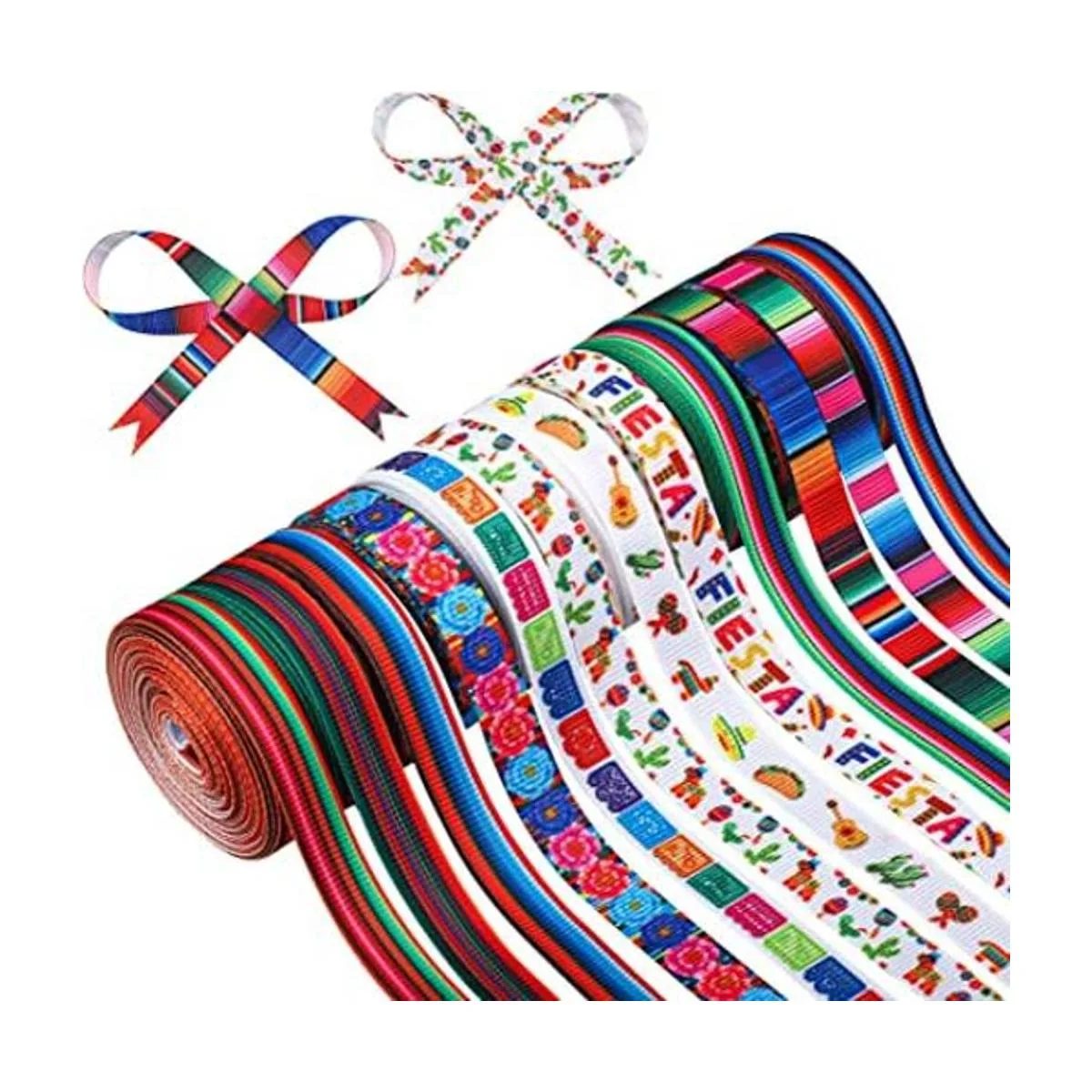 Decoraciones de fiesta: en hermosos y clásicos colores serape, estas cintas decorativas de grogrén son perfectas para fiestas, fiestas temáticas mexicanas, Dia de Los Muertos, Cinco de Mayo; también se pueden aplicar para proyectos de costura, enseñanza de manualidades o para entusiastas del bricolaje para hacer decoraciones como lazos, guirnaldas y mucho más.