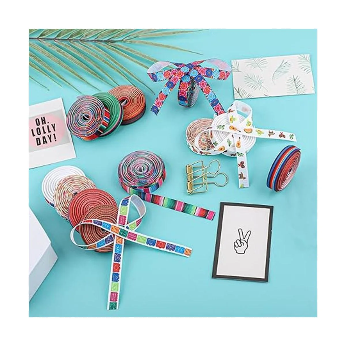 12 rollos de cinta de fiesta de 38 pulgadas, cintas de grogrén, rayas coloridas, guitarra de cactus piñata, cinta decorativa para fiesta de Cinco De Mayo, eventos de fiesta temática mexicana, 60 yardas