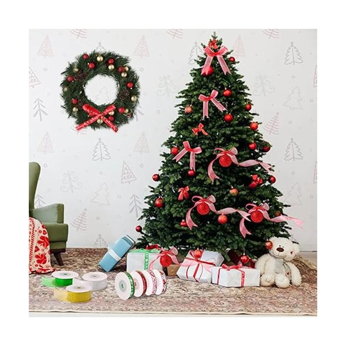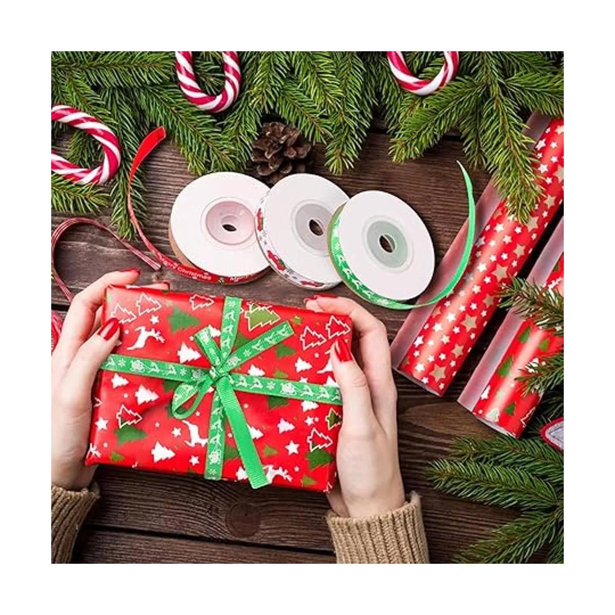 Paquete de gran valor para envolver regalos de Navidad: perfecto para decoración de Navidad, envoltura de regalos de Navidad, decoración de regalos de Navidad, regalo de vacaciones extra especial, decoración de Navidad, bodas, árboles de Navidad, baby shower, botellas de vino, arte y manualidades y mucho más.