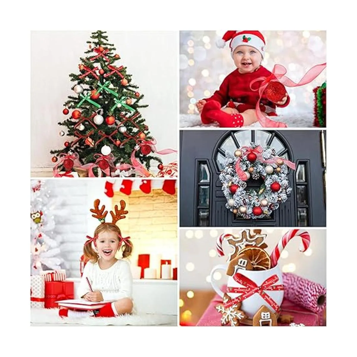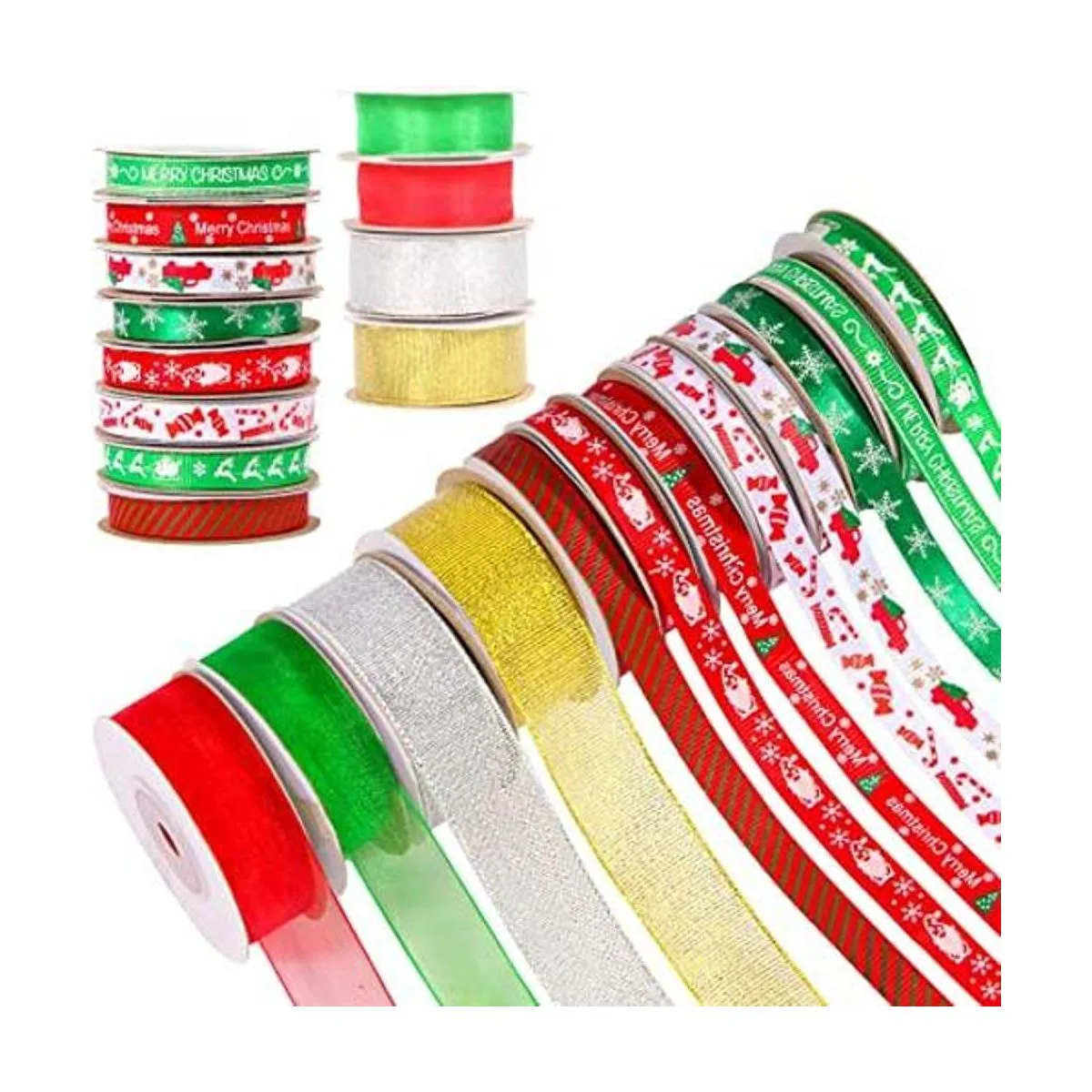 Tamaño y cantidad: 12 rollos: 8 rollos de cinta de Navidad de 3/8 pulgadas de ancho, 2 rollos de cinta de Navidad de 6/8 pulgadas de ancho, 2 rollos de cinta de Navidad de 1 pulgada de ancho, cintas mixtas para festivales de Navidad en diferentes colores, estilos y materiales en carretes. 10 yardas cada estilo, total 120 yardas, todos los colores y diseño son muy buautiosos.