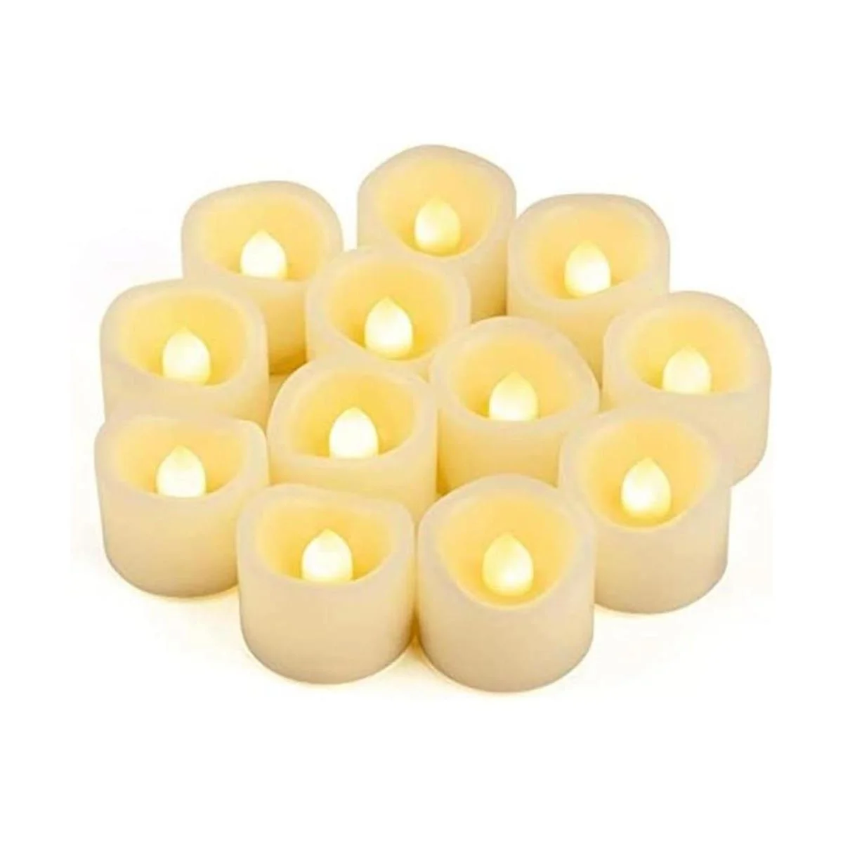 12 velas LED sin llama parpadeantes, velas votivas, funciona con pilas, velas LED eléctricas parpadeantes a granel para Halloween, Navidad, bodas, fiestas, decoraciones, etc. blanco cálido