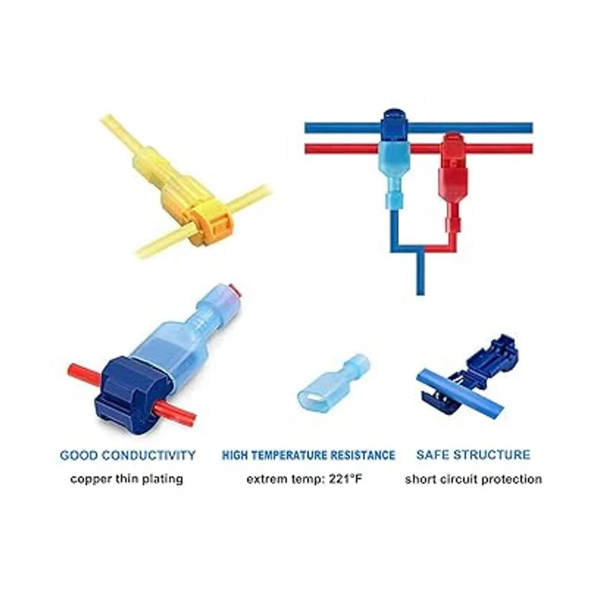 Durabilidad: los conectores de empalme de alambre están hechos de materiales de barril de cobre 200 más gruesos; los conectores de empalme rápido en T se bloquean de forma segura en el cable. La carcasa de plástico no se abrirá después de que se haya enganchado en el cable.