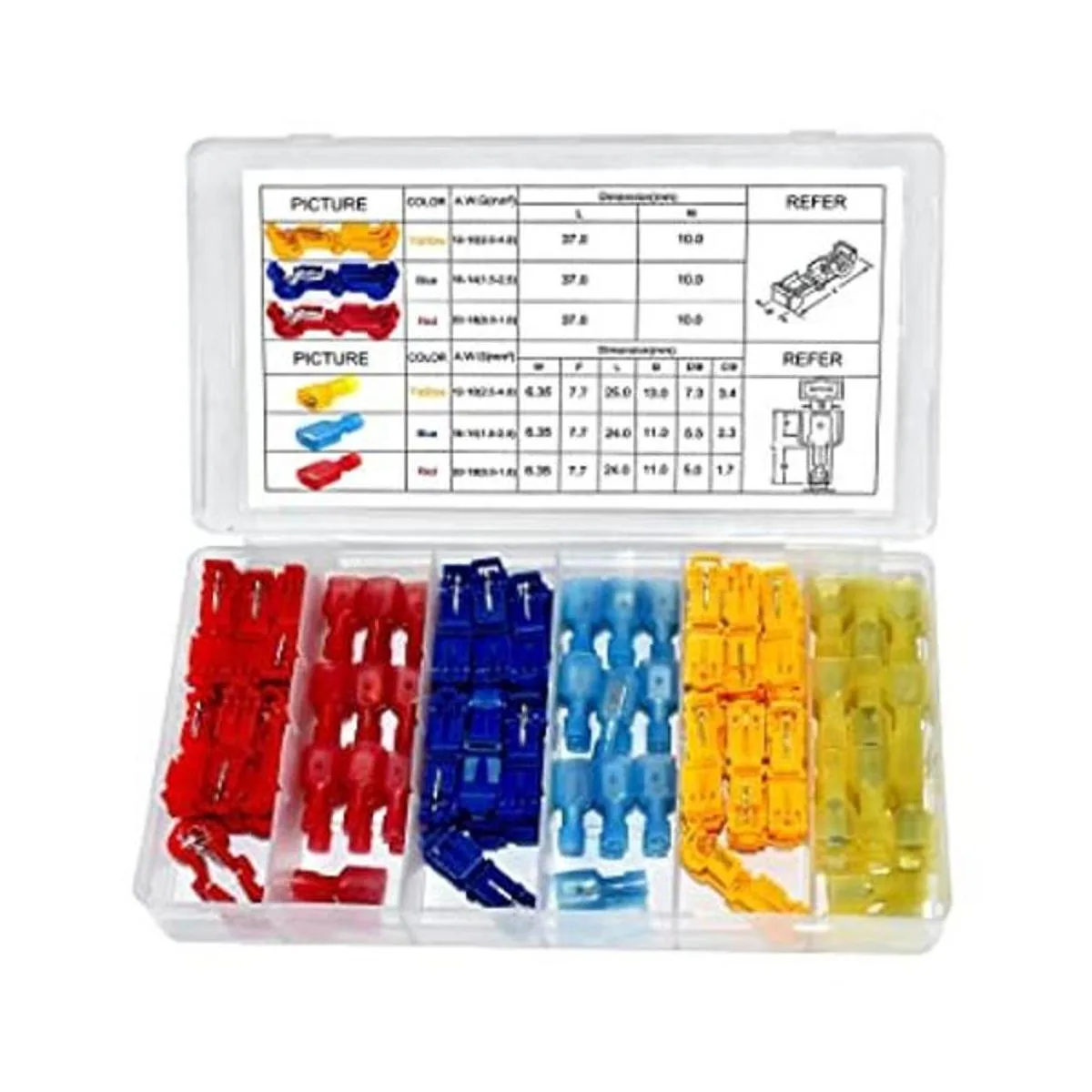 El paquete incluye: los conectores eléctricos en T autopelables MuHize contiene: 60 conectores de cable TTap comúnmente utilizados 3 colores/3 tamaños: 20 piezas rojas, 20 piezas azules, 20 piezas amarillas; 60 conectores de pala macho: 20 piezas rojas, 20 piezas azules, 20 piezas amarillas