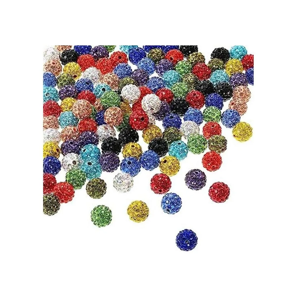 120 cuentas de arcilla de diamantes de imitación de 0.39 pulgadas, cuentas redondas de cristal de arcilla polimérica de 0.39 pulgadas, cuentas de diamante para hacer joyas, collares, pulseras con caja de plástico color mezclado