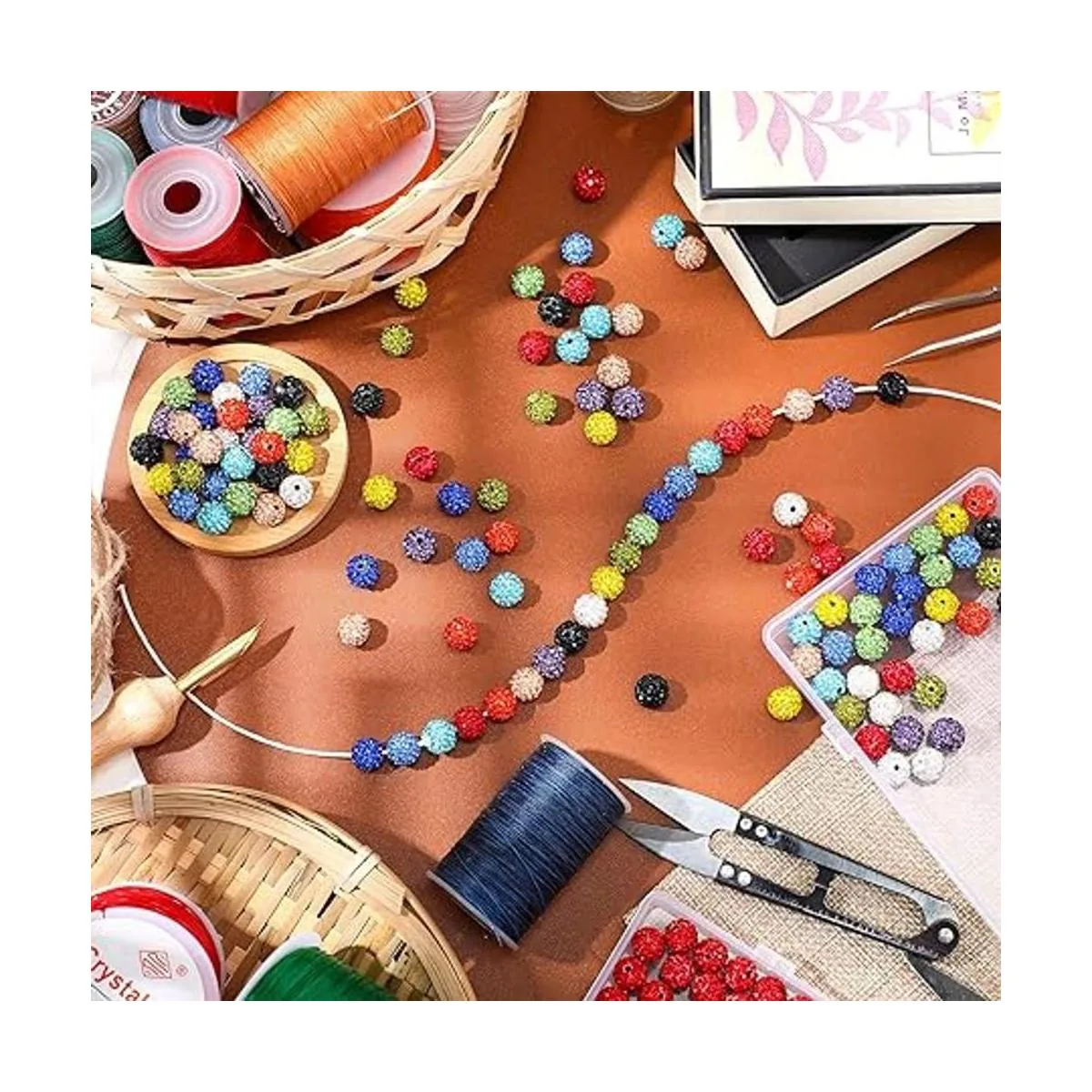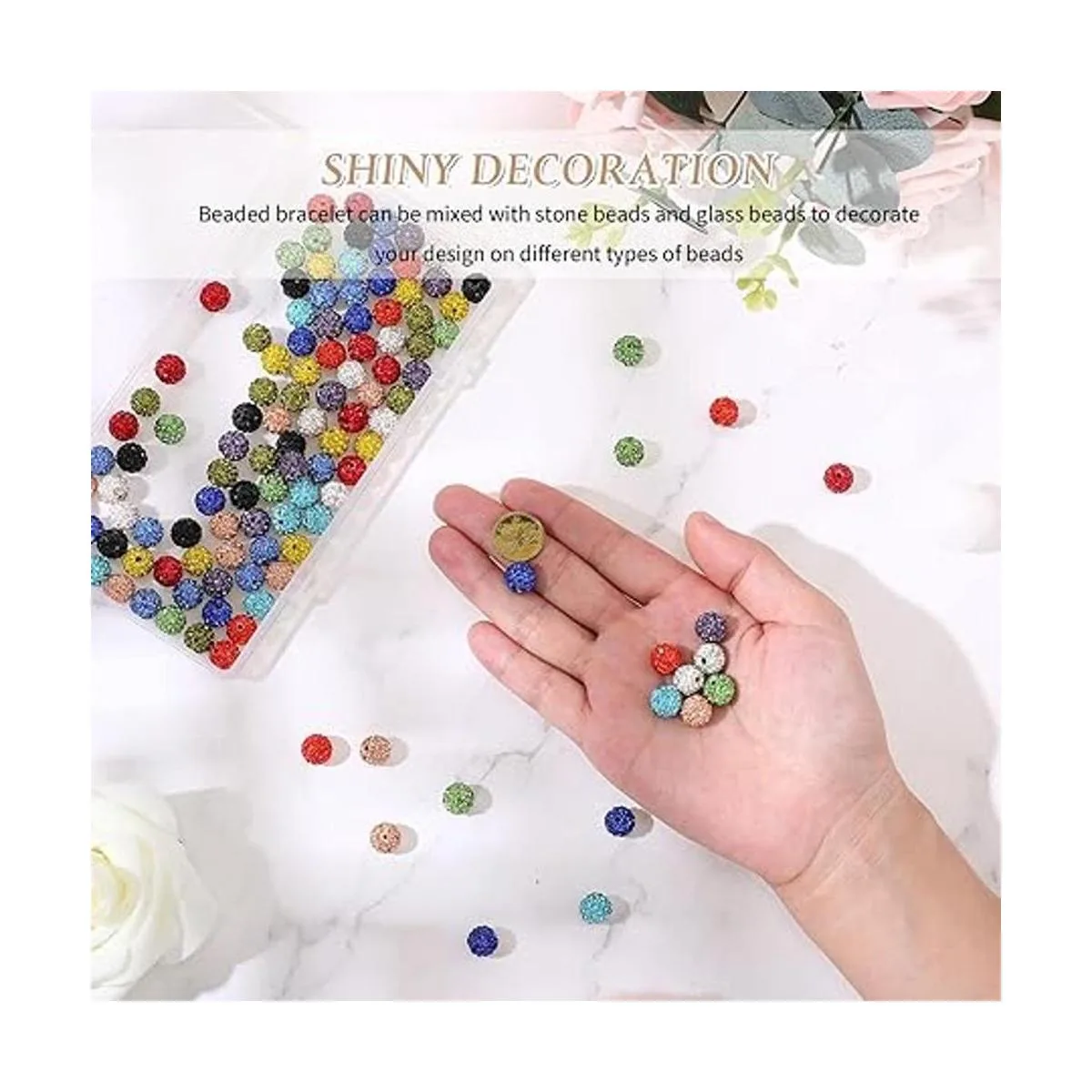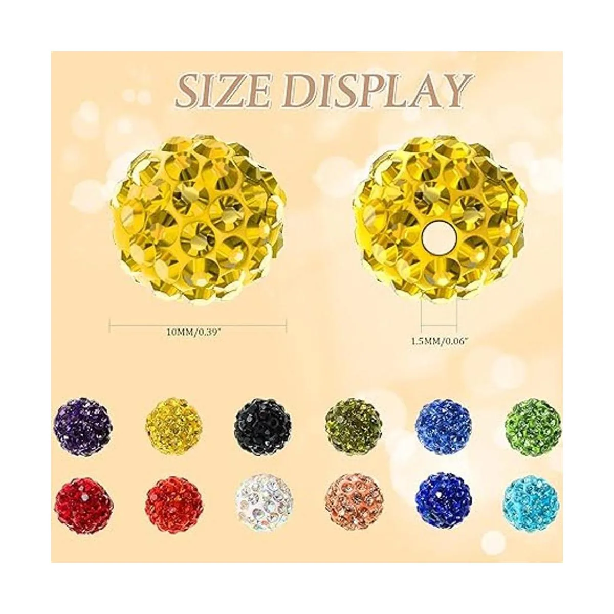 Hermoso color: estas cuentas de arcilla de bola de discoteca contienen un hermoso color, lo que hace que toda la cuenta se vea muy brillante y hermosa, se adapta a diferentes necesidades de joyería y necesidades de combinación de atuendos, los diamantes de imitación incrustados también añaden un efecto brillante a las cuentas