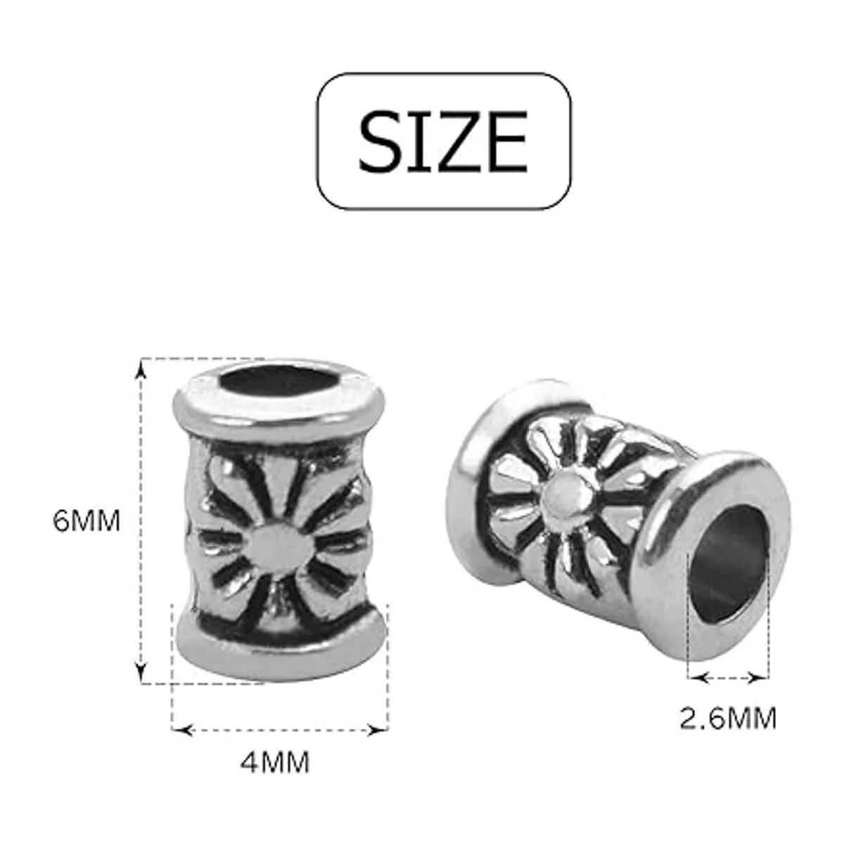 Contenido del paquete: recibirás 120 cuentas espaciadoras de aleación en plata, suficientes para tus proyectos de manualidades.