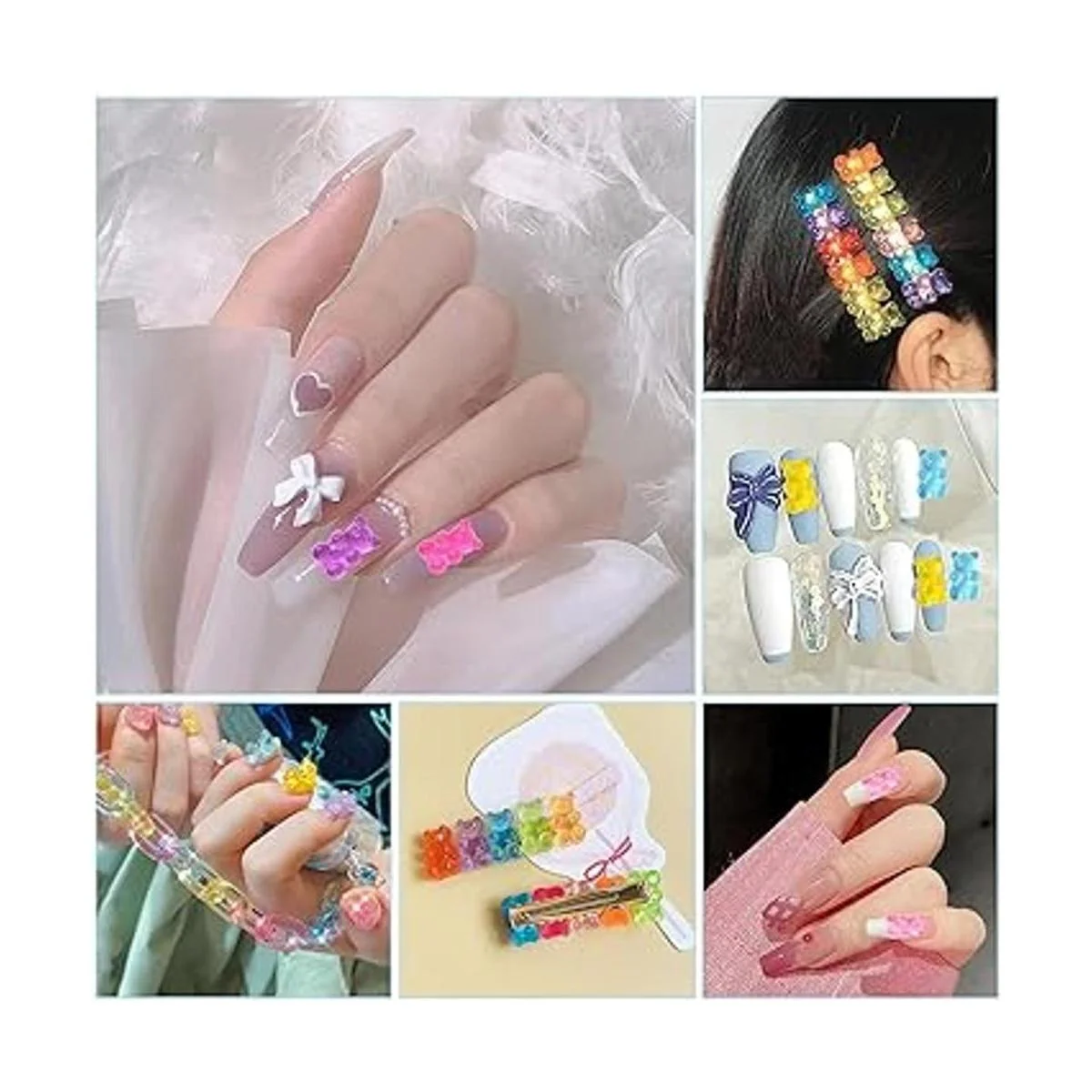 Amplia aplicación: estos hermosos dijes de uñas de oso de goma se pueden utilizar como decoración de uñas, accesorios de resina, colgante de collar de bricolaje, rellenos de resina, fabricación de joyas, accesorios para el cabello, funda de teléfono, etc. Puedes dar juego completo a tu imaginación y crear obras únicas.