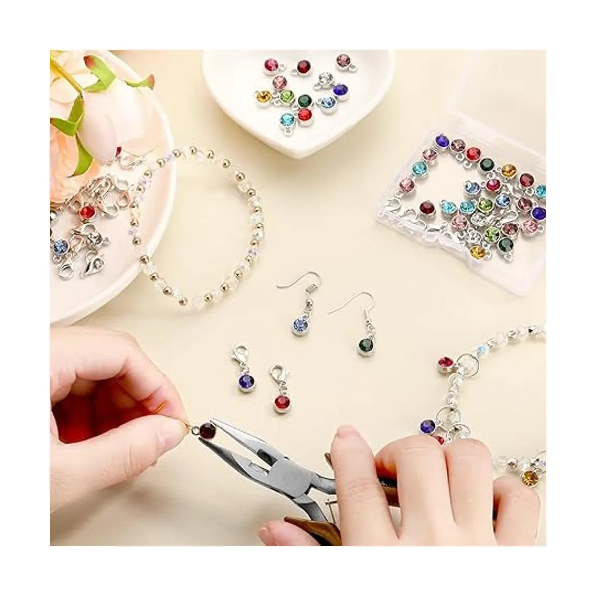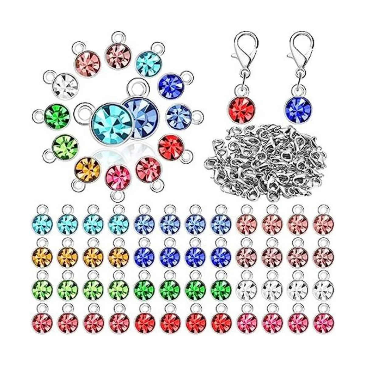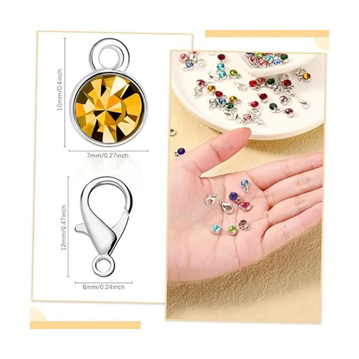 Cantidad adecuada para diversas necesidades: recibirás 60 dijes de piedra natal en 12 colores diferentes, cada color tiene 5 piezas y 60 cierres de mosquetón, completos en combinación para satisfacer tus necesidades, pero las juntas tóricas no están incluidas en este juego de productos.