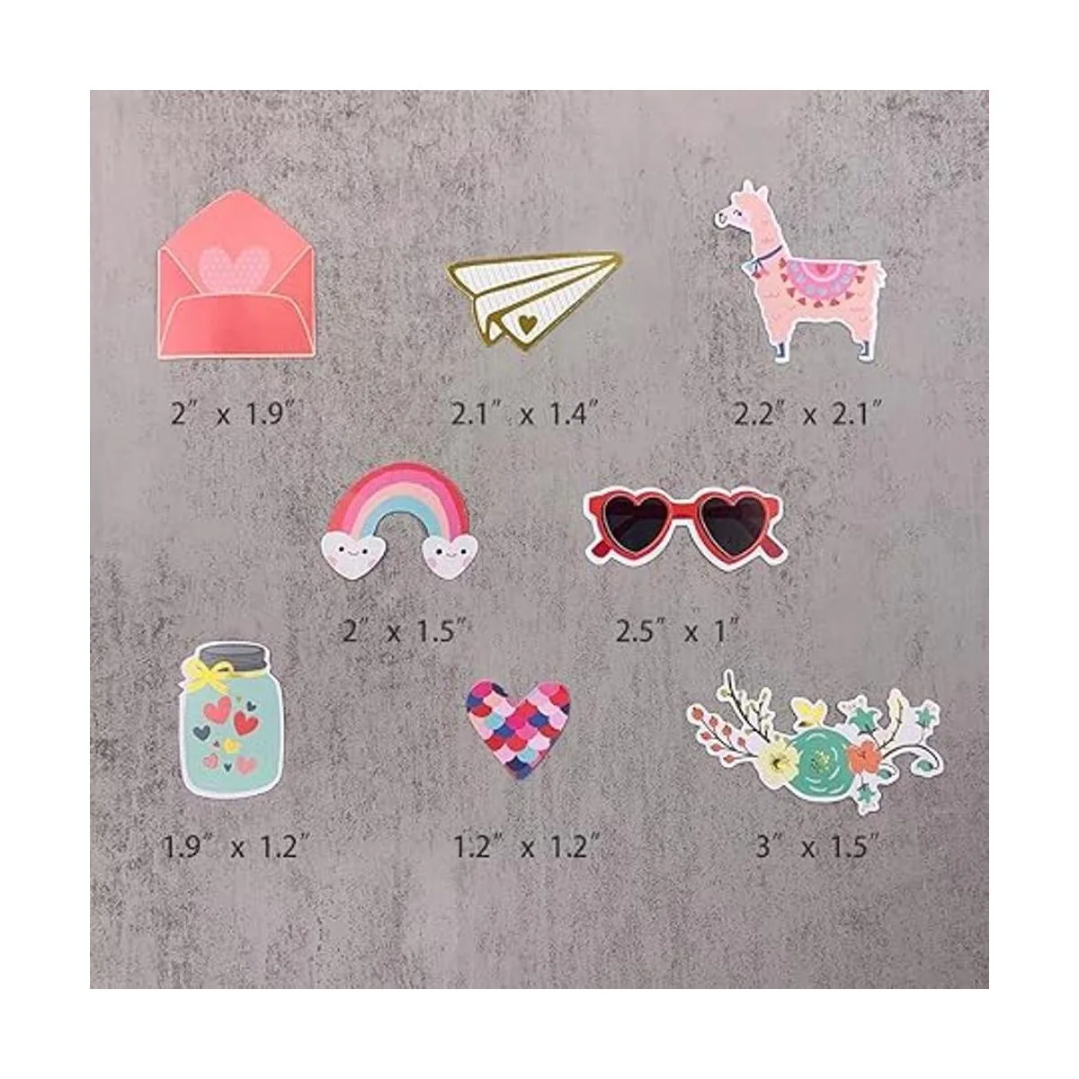 Calcomanías decorativas: estas bonitas calcomanías están impresas en cartulina de alta calidad, son pegajosas y se mantienen bien en superficies lisas y secas, lo que añadirá color a tu laptop, manualidades y álbumes de recortes.