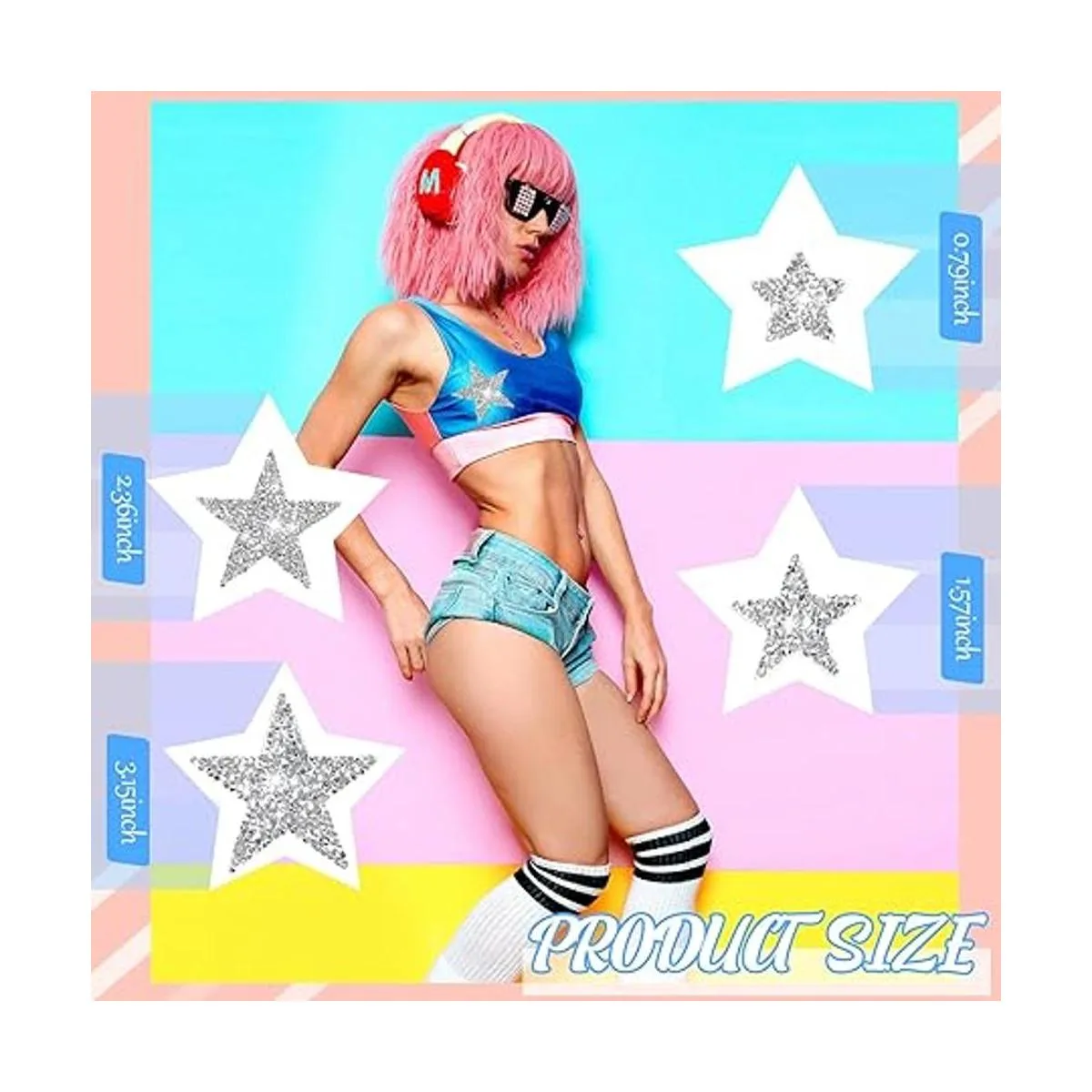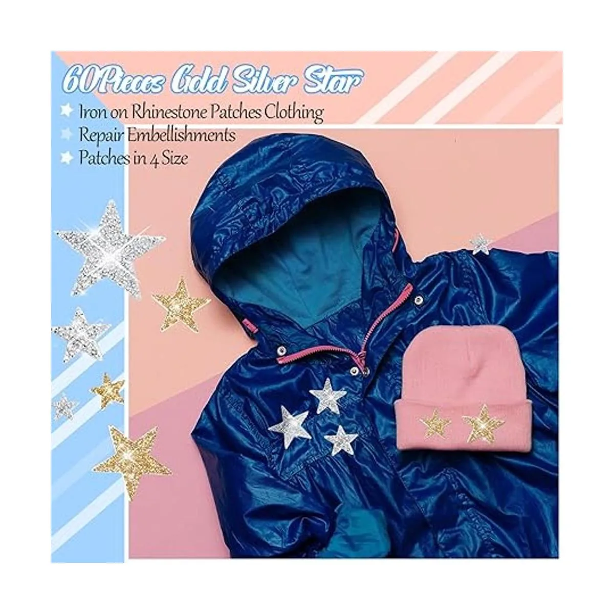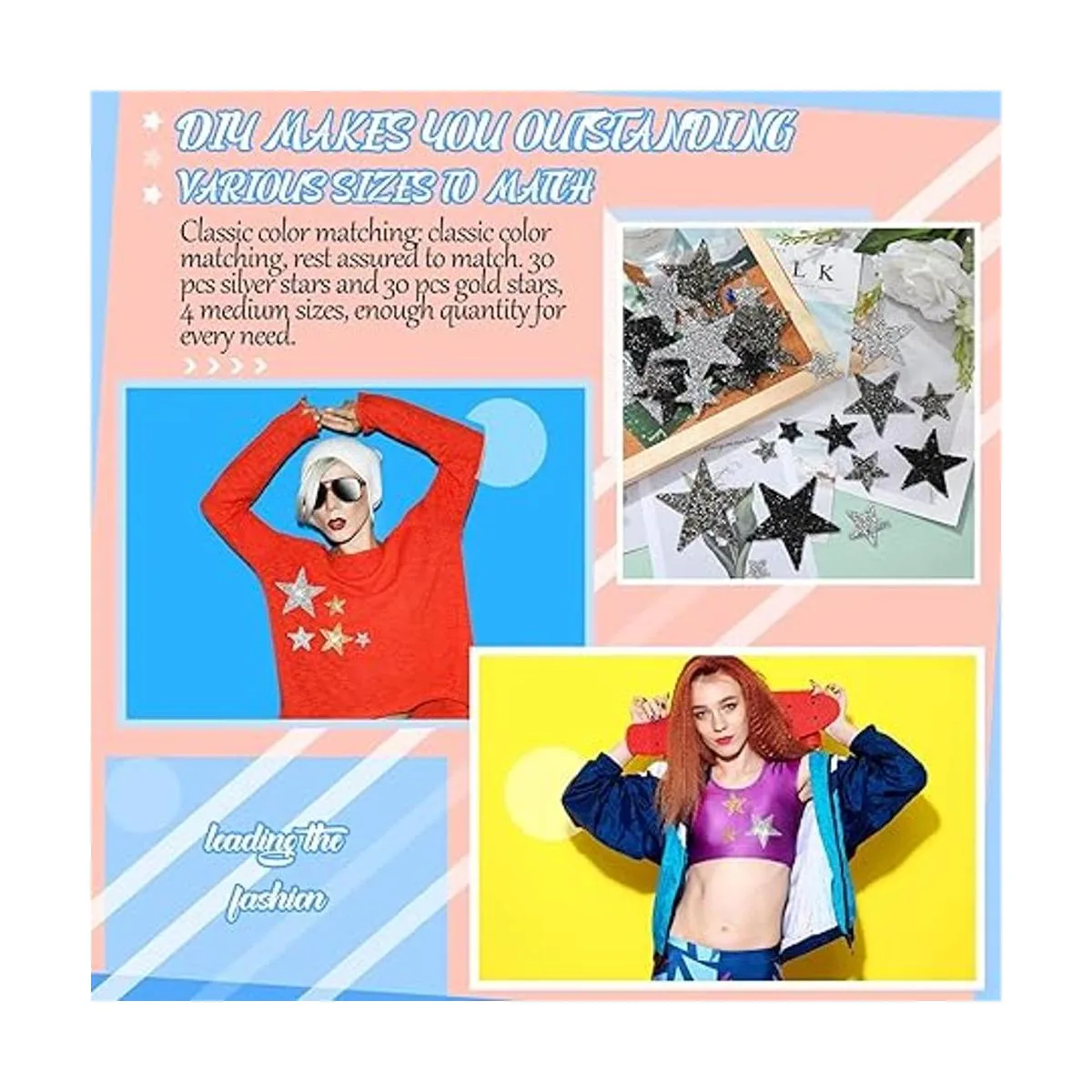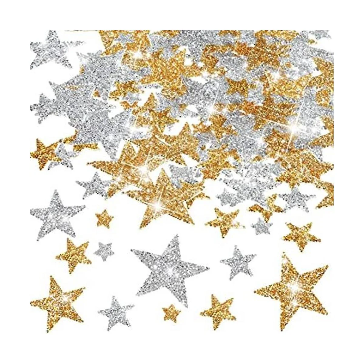 120 piezas de apliques de diamantes de imitación de estrella para planchar en estrellas con diamantes de imitación, parches de estrellas con purpurina para accesorios de bricolaje en 4 tamaños plata, dorado