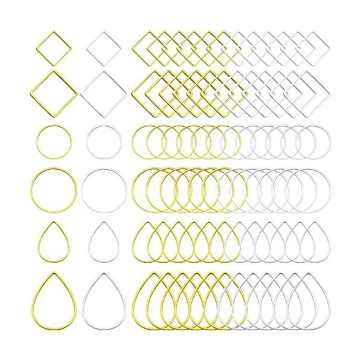 120 piezas de aretes de aro para hacer joyas de 3 formas, aretes hipoalergénicos, lágrima, cuadrado, redondo, arete de aro de bisel abierto a granel, para hacer aretes dorado