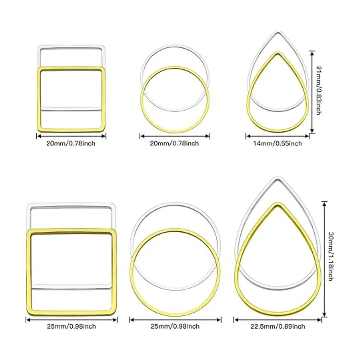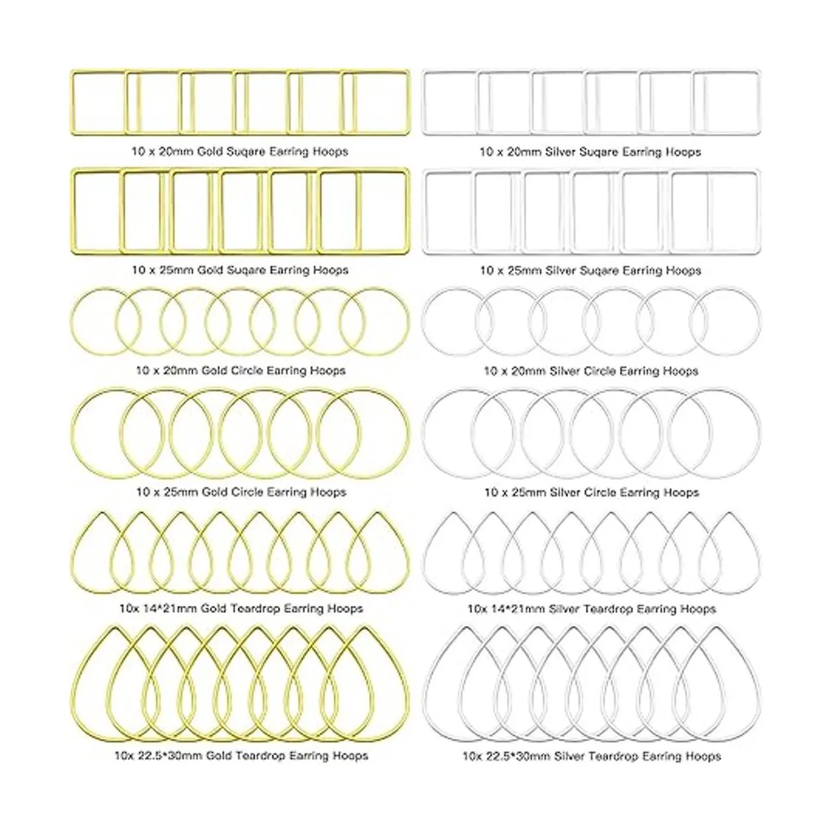 Material y tamaño de calidad: nuestros aretes están hechos de aleación duradera, no se decolora, no se oxida, no se deforma. Es muy ligero, adecuado para bricolaje y manualidades. Tamaño de los aretes circulares: 0.787 in, 0.984 in; tamaño de los accesorios de aro de lágrima: 0.551 x 0.827 in, 0.886 x 1.181 in; tamaño de los aretes de aro cuadrados: 0.787 in, 0.984 in.
