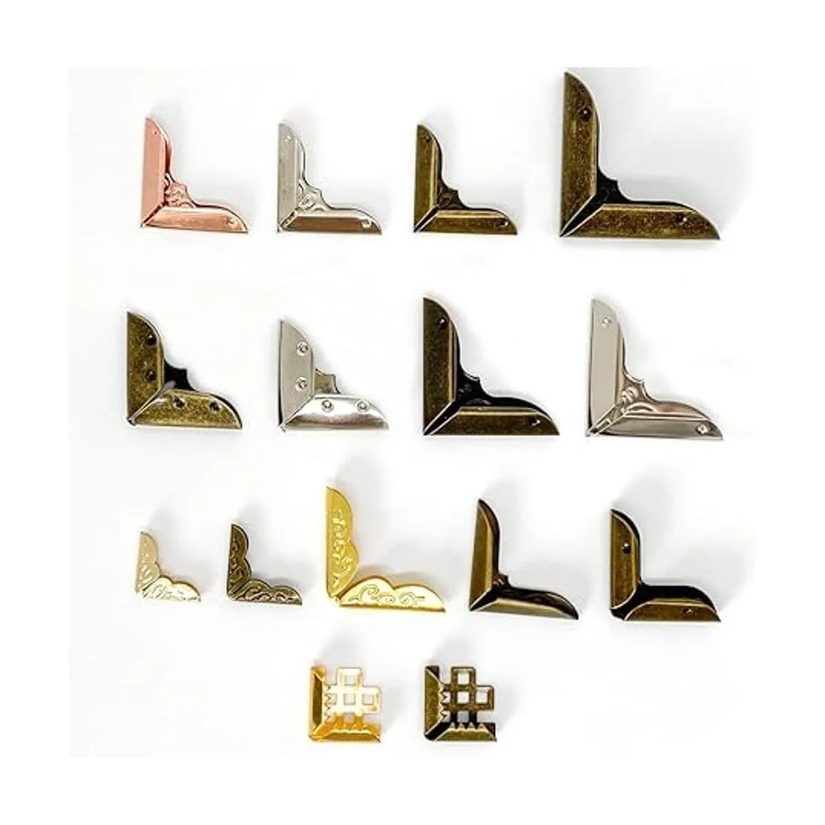 120 protectores de esquina de metal vintage para libros de hierro, protector de esquina para libros, álbumes de recortes, álbumes de recortes, cuadernos, carpetas de archivos, esquina, marco decorativo, protector de ángulo, cubiertas de 15 estilos