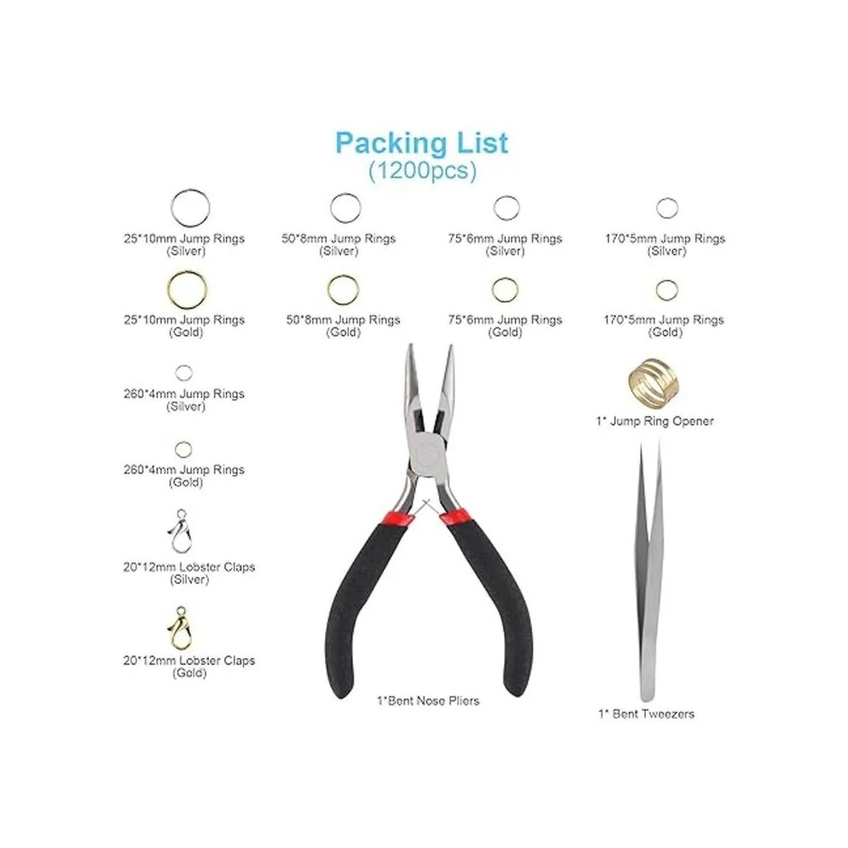 1200 anillos de salto abiertos y cierres de langosta con alicates de anillo de salto, kit de hallazgos de joyería perfecto para hacer joyas y reparación de collares