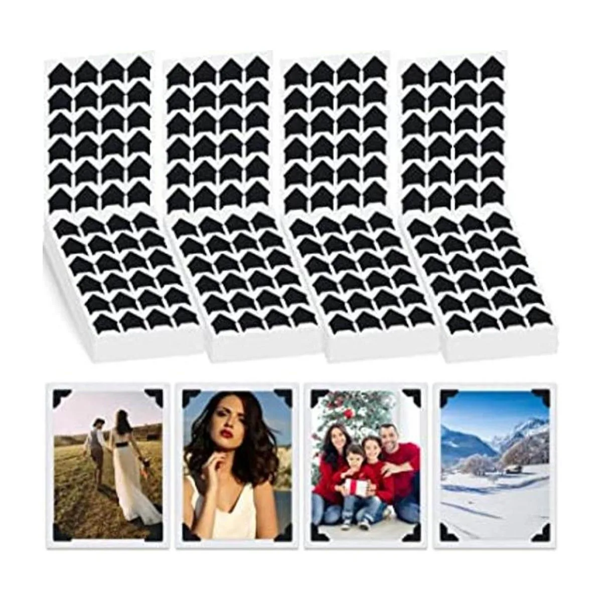 Amplia gama de usos: estas esquinas de montaje de fotos negras son adecuadas para decorar álbumes de fotos, álbumes de recortes, marcos de fotos, tarjetas, proyectos de manualidades, etc. El clásico color negro puede combinar con la mayoría de estilos, conveniente para aplicar y crear un estilo vintage para fotos