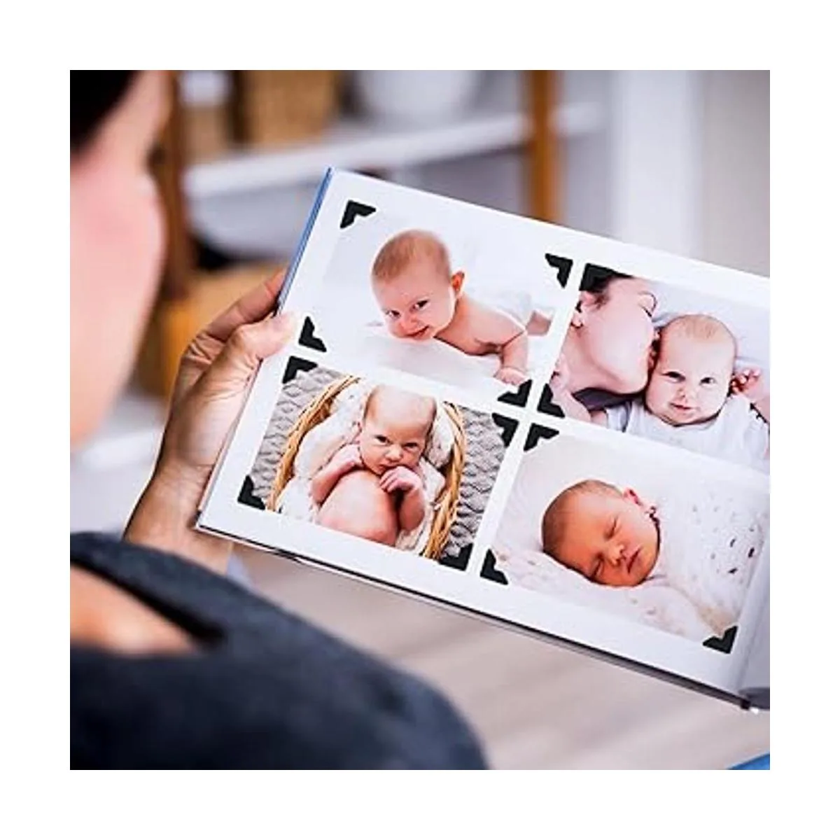 Fácil de instalar: estas calcomanías de esquina de fotos son autoadhesivas, fáciles de pegar a tus fotos y proyectos, no se necesita pegamento adicional; simplemente retira las esquinas de las fotos de las hojas y aplícalas directamente a las páginas del álbum, o desliza sobre la esquina de una foto y colócala en la página del álbum