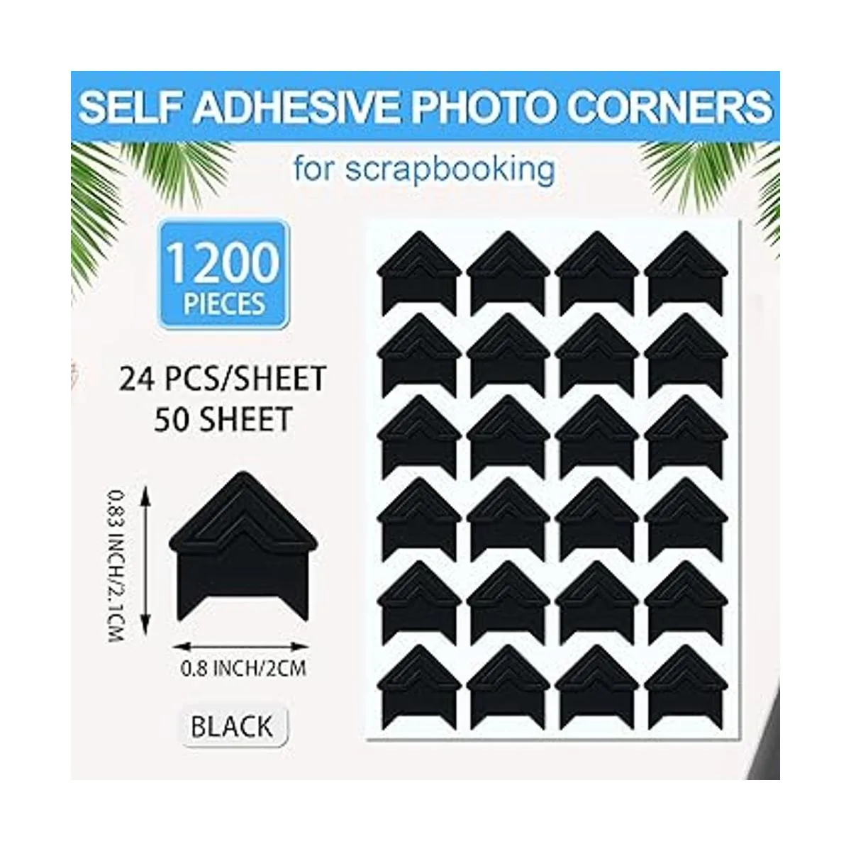El paquete incluye: recibirás 50 hojas de esquinas autoadhesivas para fotos, 24 piezas para cada hoja, 1200 piezas en total; cantidad suficiente puede satisfacer tus diferentes demandas decorativas, también puedes compartirlas con tus amigos