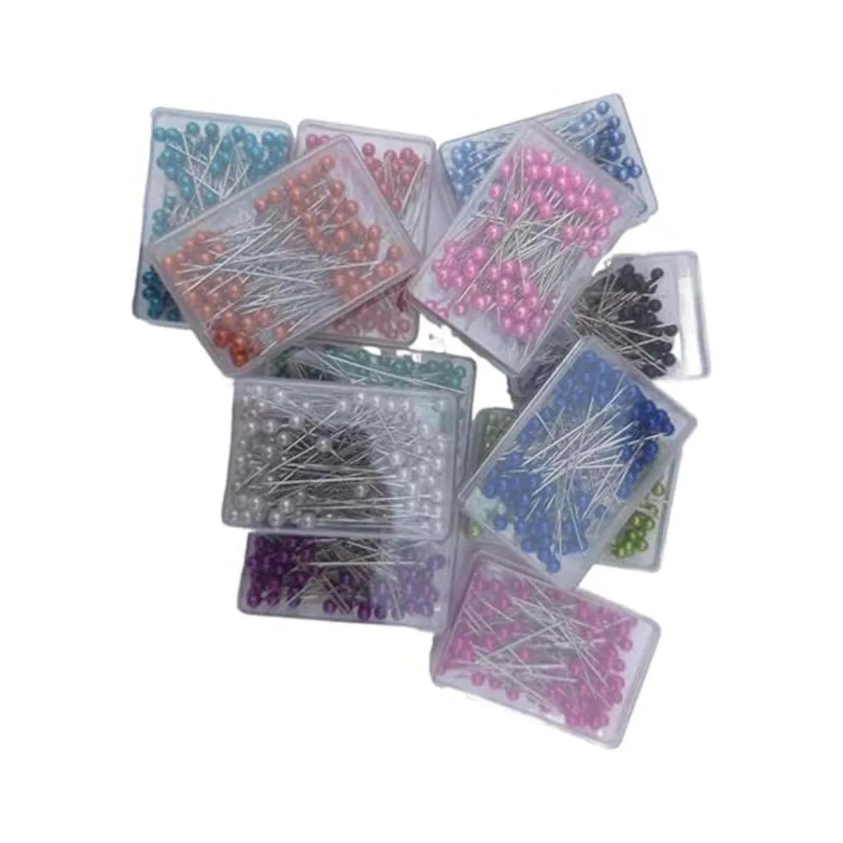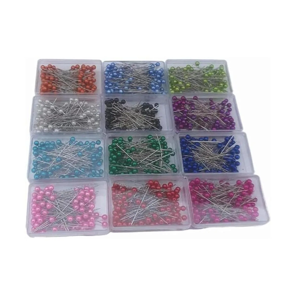 1200 pines de costura multicolor con cabeza de perla de bola de colores, pasador de acolchado recto de 1.5 pulgadas para decoración de vestuario y joyería con fundas transparentes 12 colores