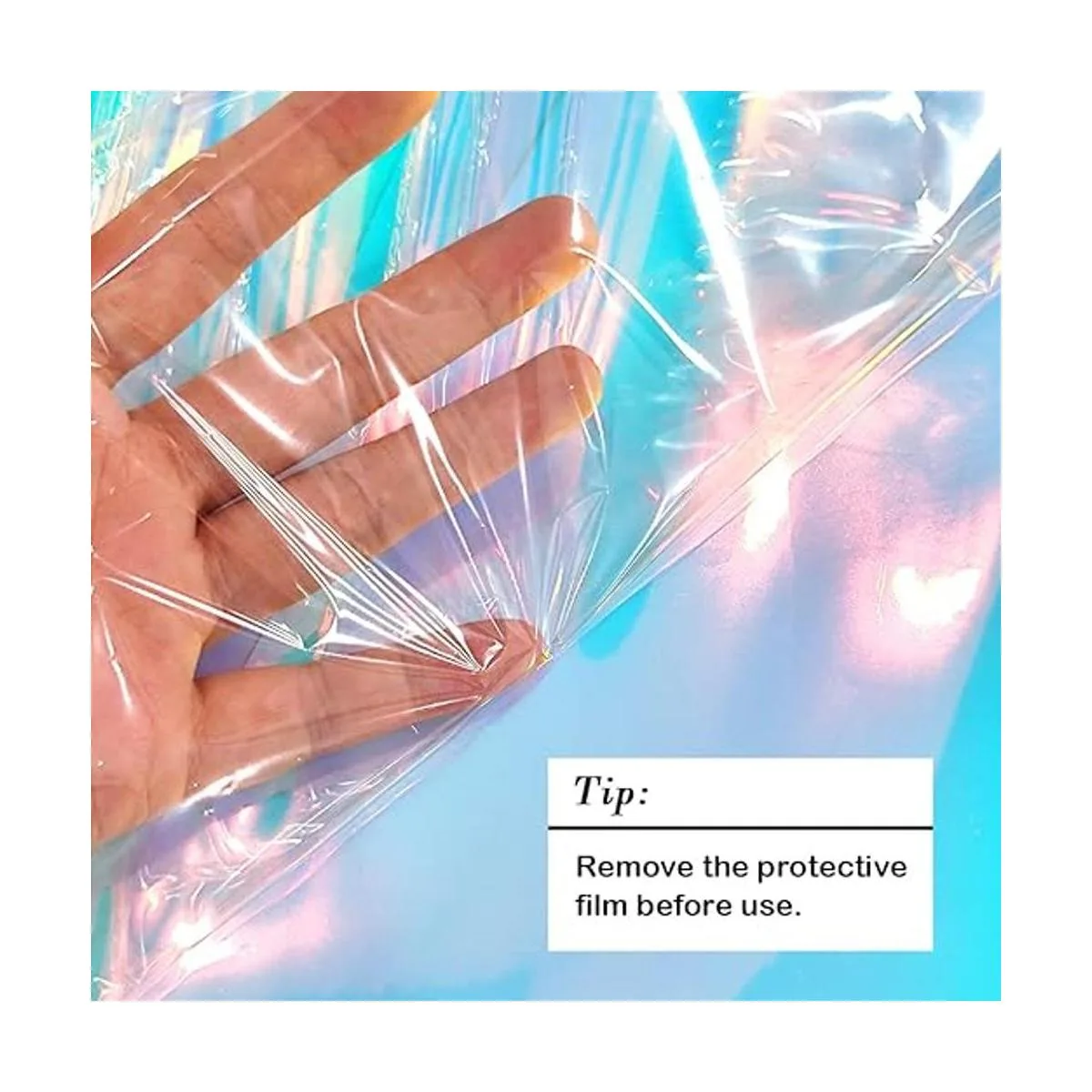 Material: Waterproof holographic clear PVC vinyl, It can reflects various colors from different angels.