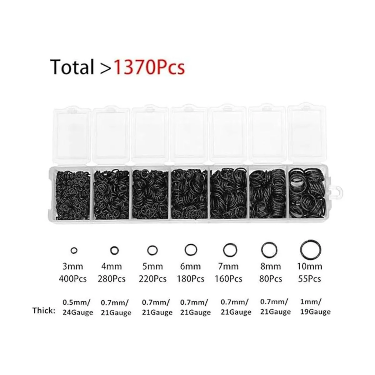 1370 piezas surtidas de 7 tamaños 0.118 in 0.394 in redondo abierto Jump Ring Split Anillos joyas Findings Conector para pendientes, pulsera, collar, llavero accesorios negro