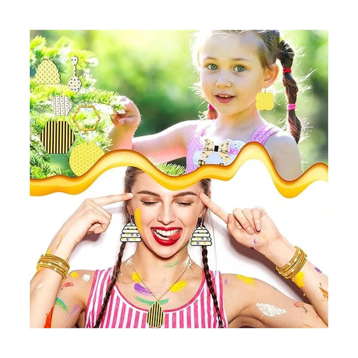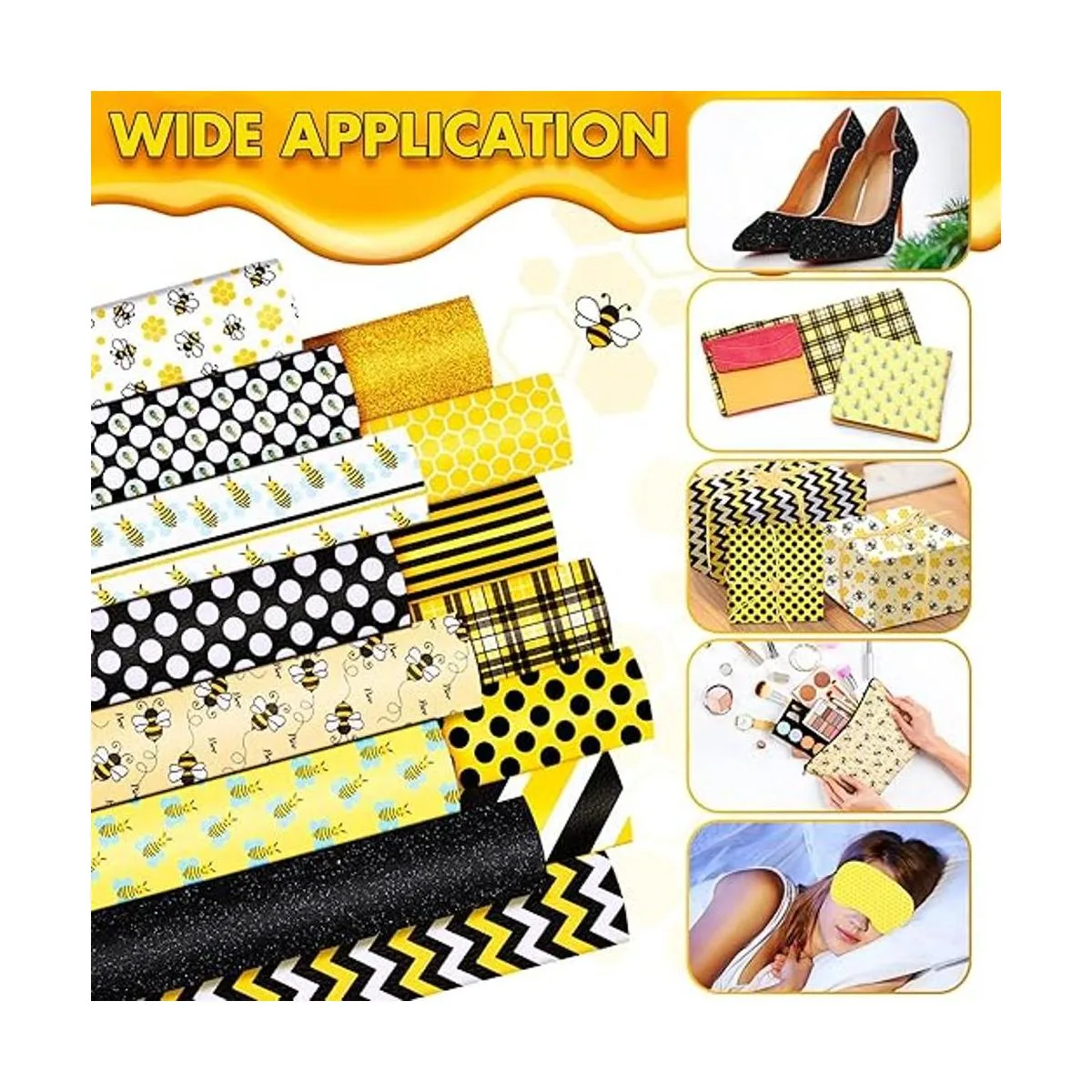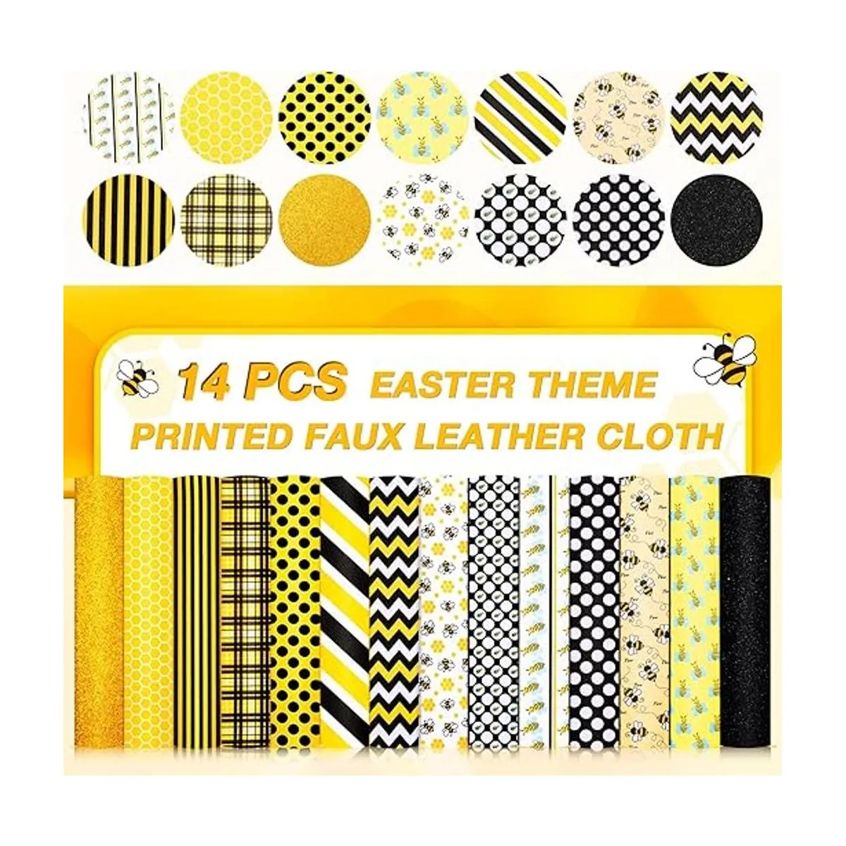14 hojas de piel sintética con estampado de abeja limón y fruta de verano, hojas de piel sintética con purpurina para hacer aretes, 8.3 x 6.3 pulgadas abeja