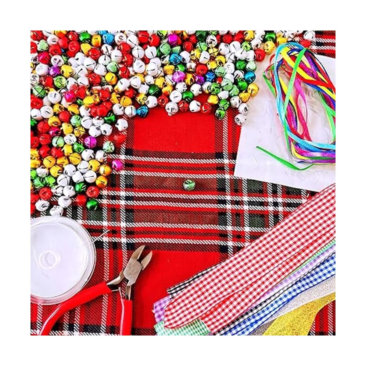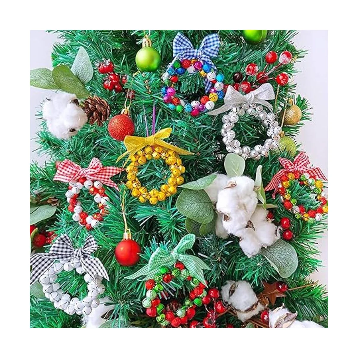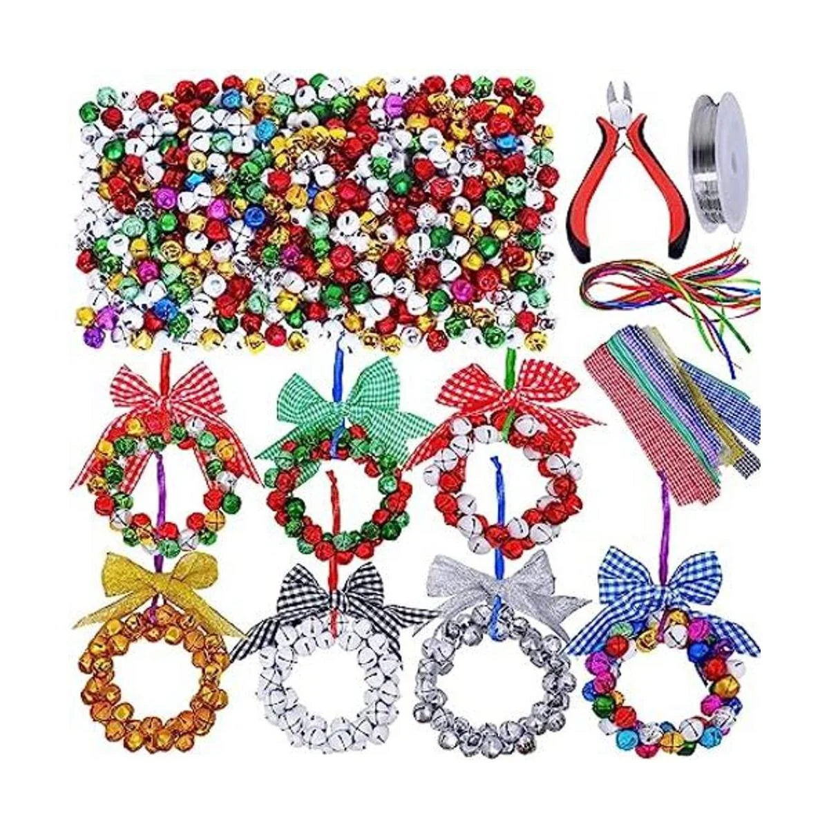 Cantidad: el kit de manualidades de adornos para árbol de Navidad incluye 562 cascabeles de Navidad en 4 estilos y 9 colores, 14 cordones de cinta de satén en 7 colores, 14 lazos en 7 colores, 1 rollo de alambre de hierro, 1 alicates y 20 puntos adhesivos.