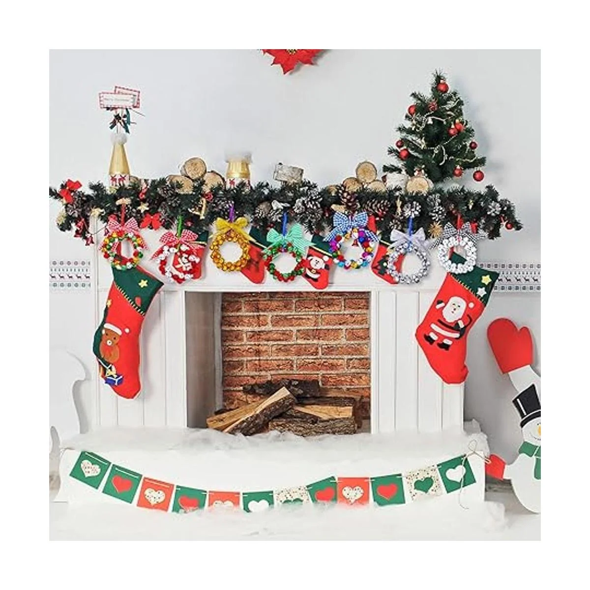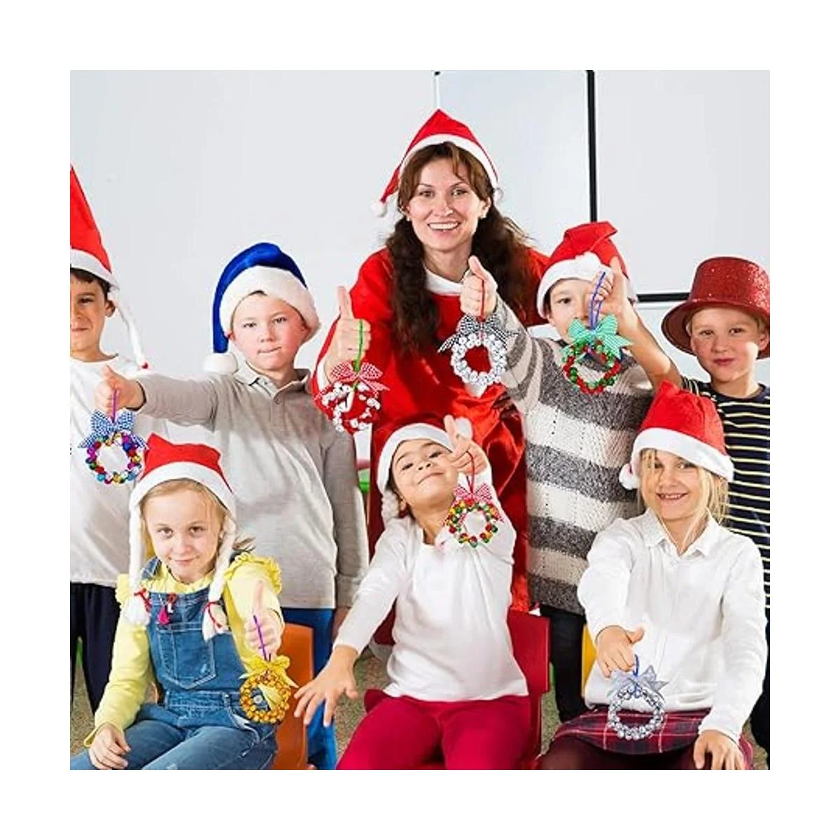 14 juegos de corona de cascabel de Navidad, adornos para árbol de Navidad, kit de manualidades, cascabel, cintas, lazos, surtido para niños, vacaciones, Navidad, invierno, pulseras, collares, obras de arte