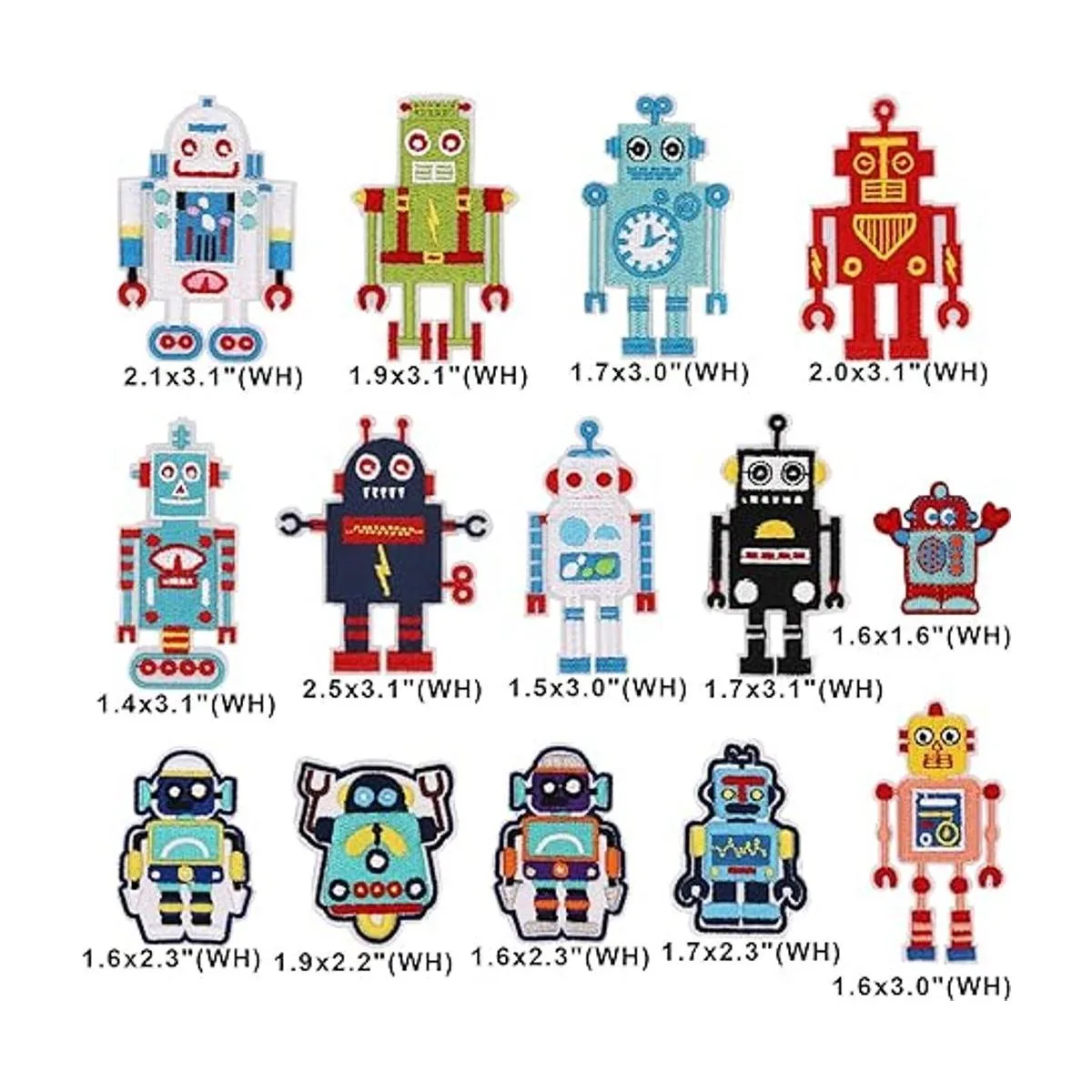 14 parches bordados con diseño de robot para coser o coser, para vaqueros, chaquetas, ropa de niños, bolsos, mochilas, gorras, manualidades, 14 piezas
