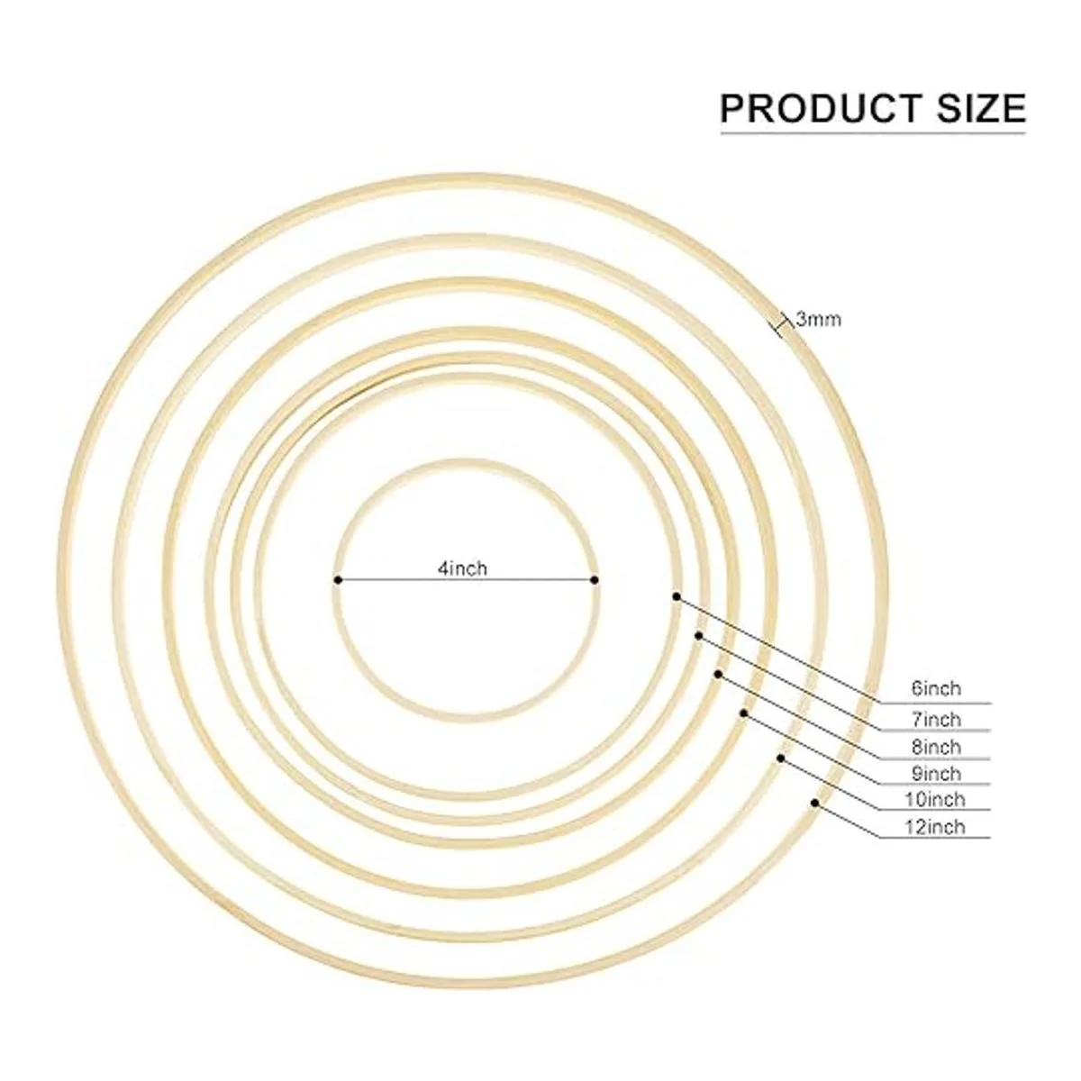 14 piezas de 7 tamaños de madera de bambú floral juego de aro de macramé para manualidades, aros redondos de madera para decoración de coronas, atrapasueños y manualidades 467891012 pulgadas