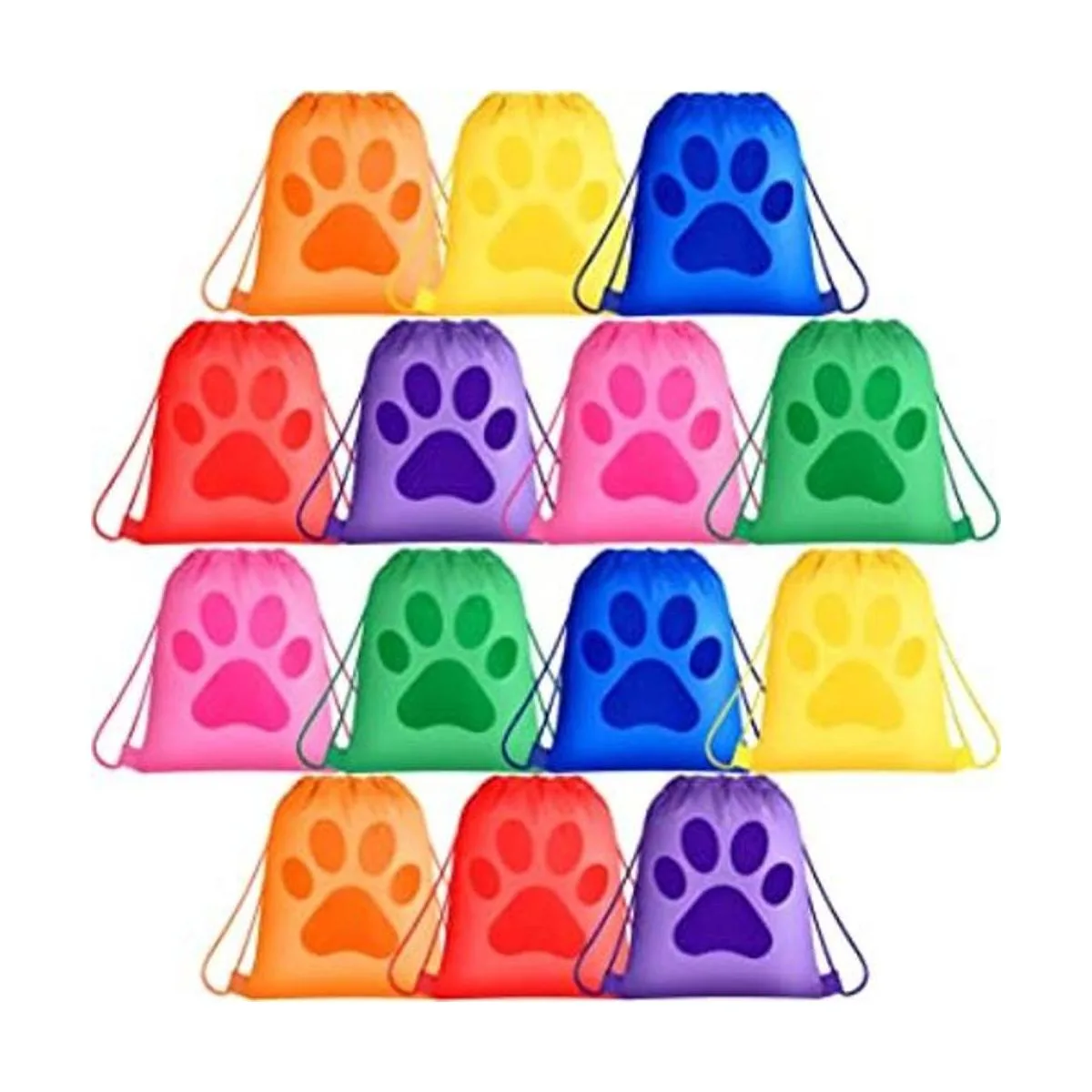 14 piezas de mochila con cordón con estampado de patas, bonitas bolsas de recuerdos de fiesta, reutilizables, bolsas con cordón de patas, bolsa de cuerda con estampado de patas, bolsa de huellas de cachorro, suministros de recuerdos de fiesta