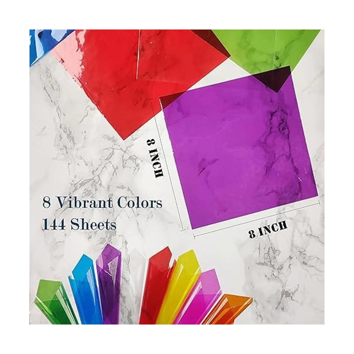 El paquete incluye: 144 hojas de papel de celofán de color, 8 colores diferentes