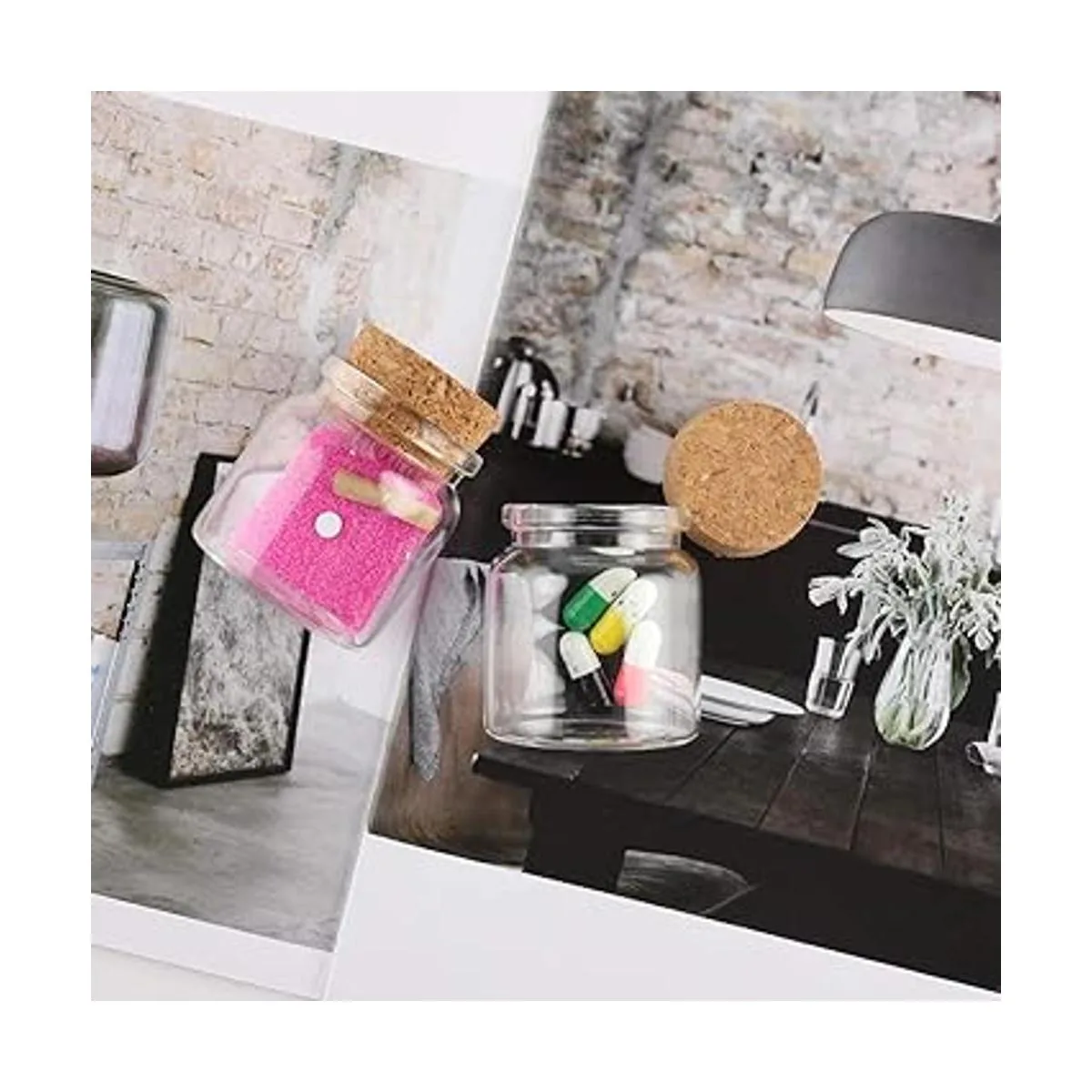 Mini recipientes de cristal transparentes con corchos para bricolaje para botellas de perfume. También son adecuados para piezas de arte colgantes intercambiables, mensajes en un dije de botella, dijes de recuerdo y mucho más.
