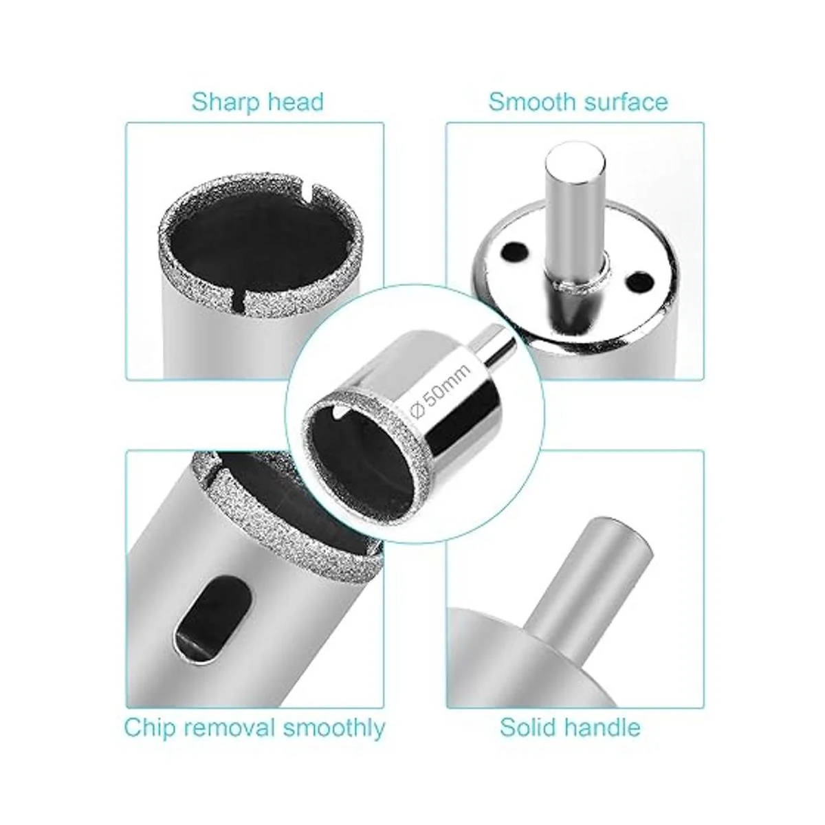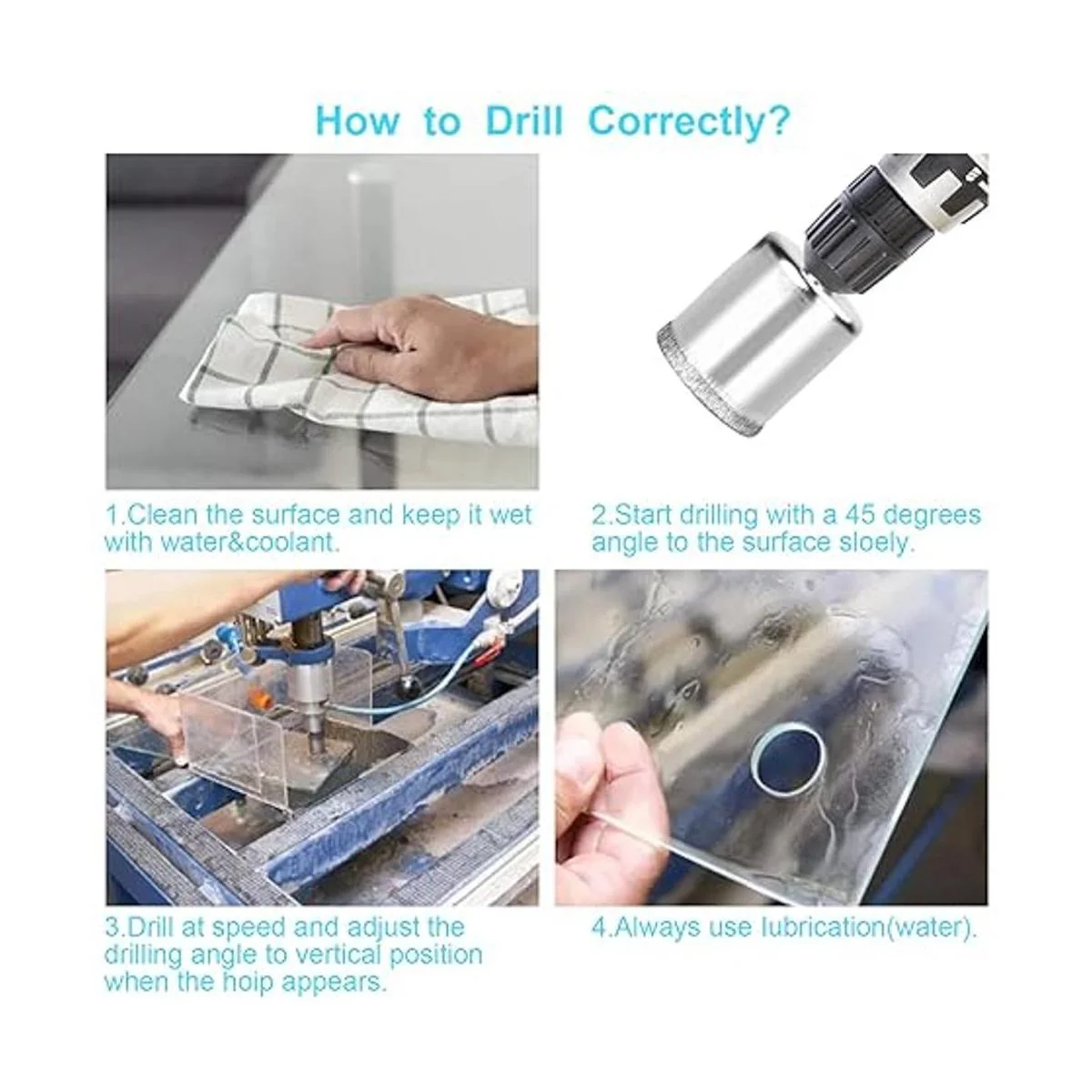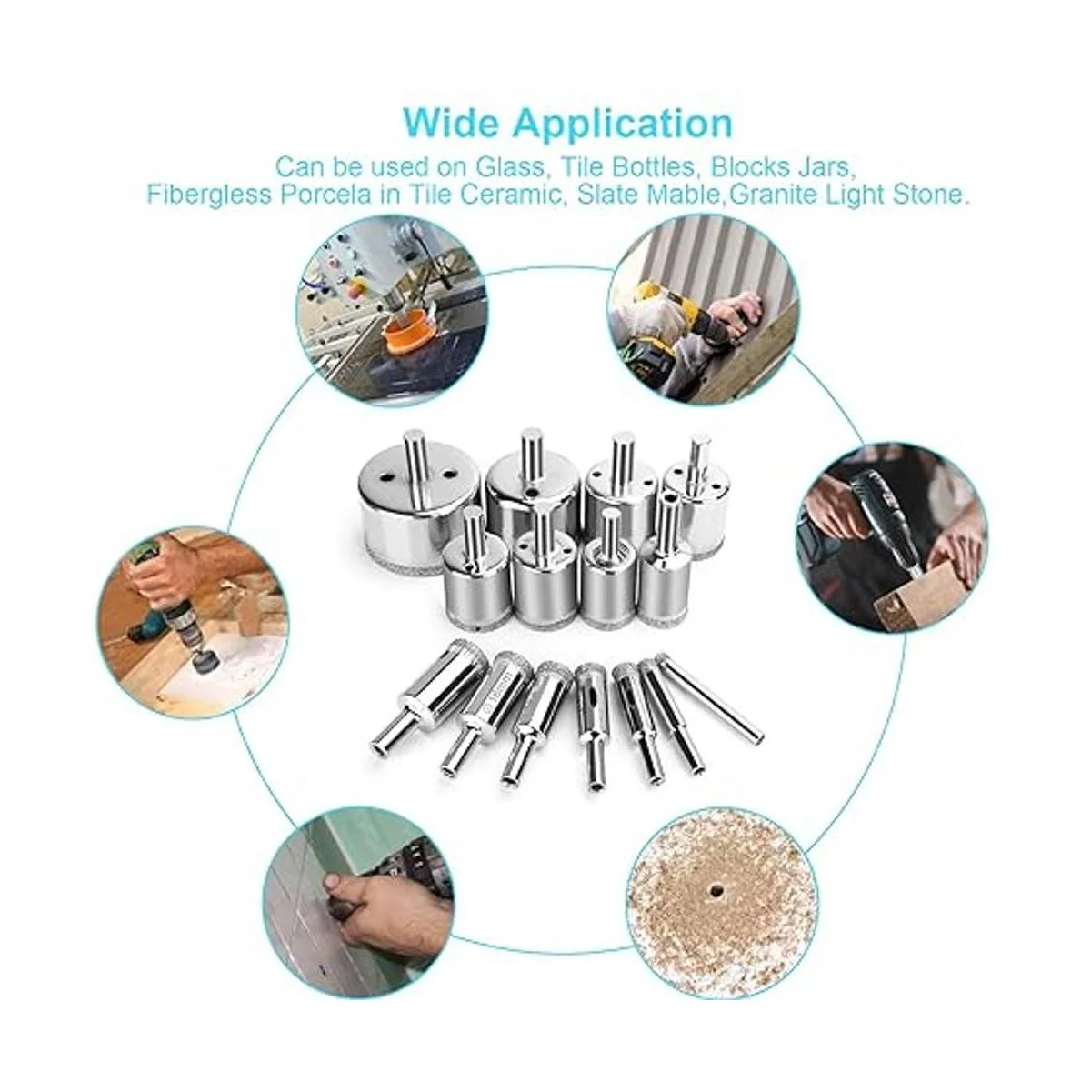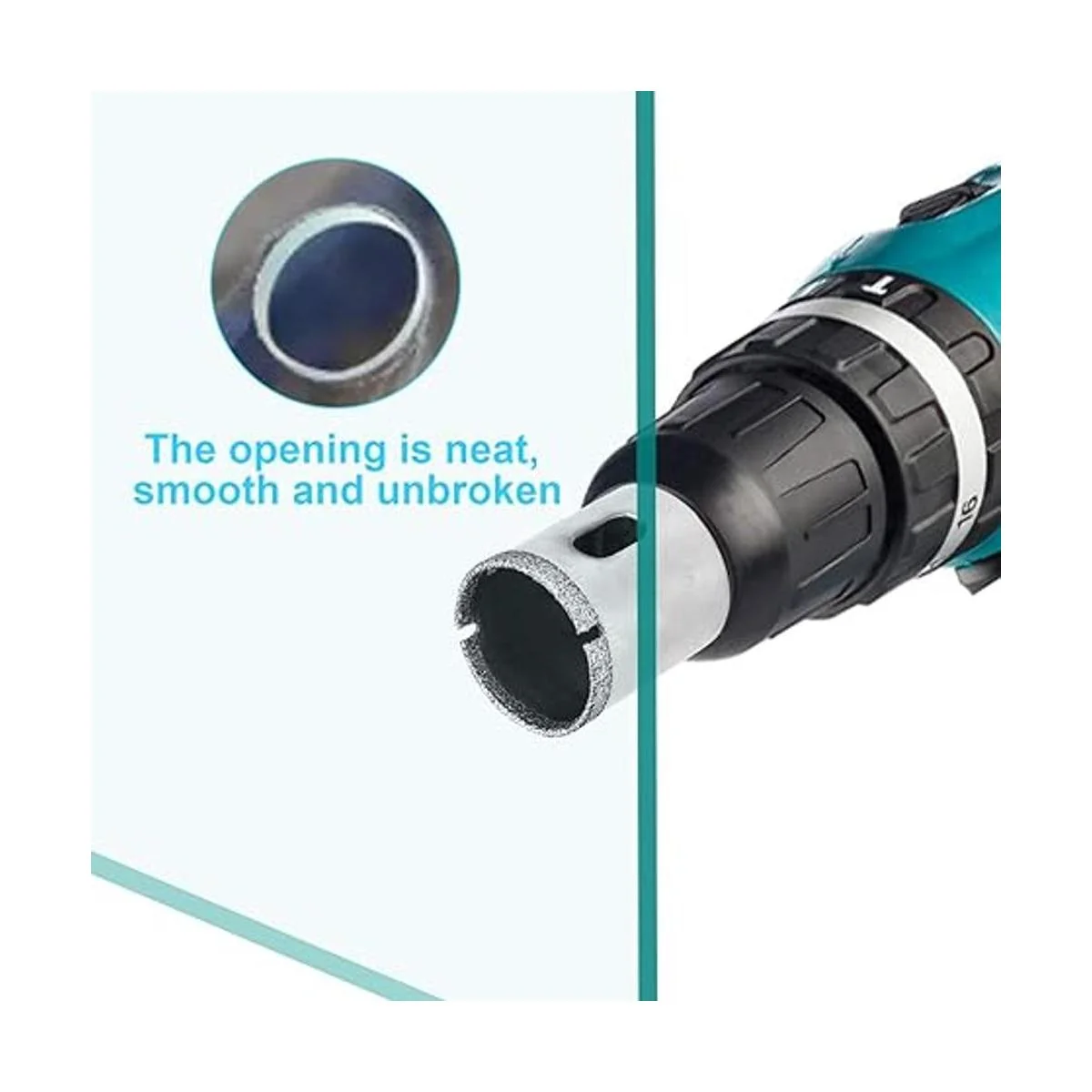 Amplio uso: el kit de brocas de sierra perforadora de diamante elimina un círculo completo de vidrio, mármol, azulejos, granito, cerámica u otros. Perfecto para taladrar vidrio, azulejos de porcelana, granito, botellas, madera, tarros de bloques, mármol de cerámica y otras superficies duras, etc.