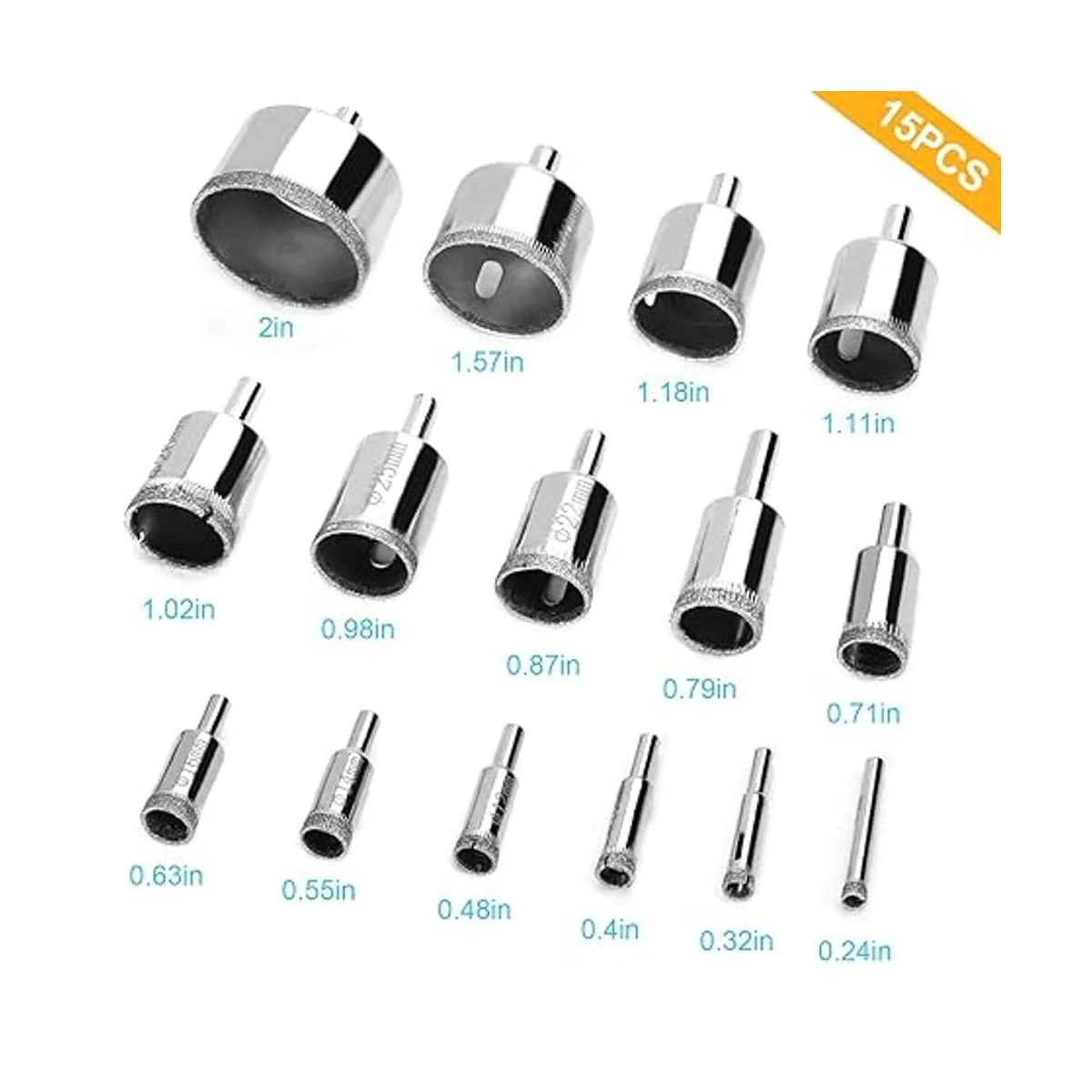 15 brocas de diamante para cerámica, juego de brocas de sierra de agujero de diamante, broca de vidrio de alta calidad para botellas, ollas, mármol, piedra de granito, corte de azulejos de 0.23 pulgadas 2 pulgadas 0.236 in 1.969 in YLYL