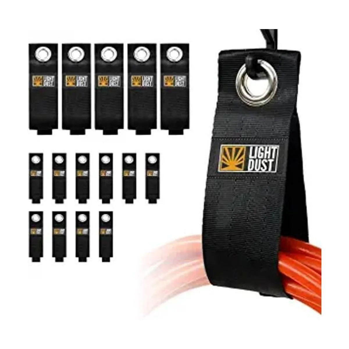 Garantía de satisfacción: garantía de devolución de dinero de 30 días Un gran regalo para papá o cualquier persona que ama la organización Las 15 correas de almacenamiento resistentes para polvo ligero incluyen 5 tamaños grandes 13.7 x 2 pulgadas que pueden soportar hasta 50 libras y 10 tamaños pequeños 7 x 1 pulgadas que pueden soportar hasta 25 libras No dudes en ponerte en contacto con nosotros si no estás satisfecho con nuestro organizador de soporte de cable de extensión.