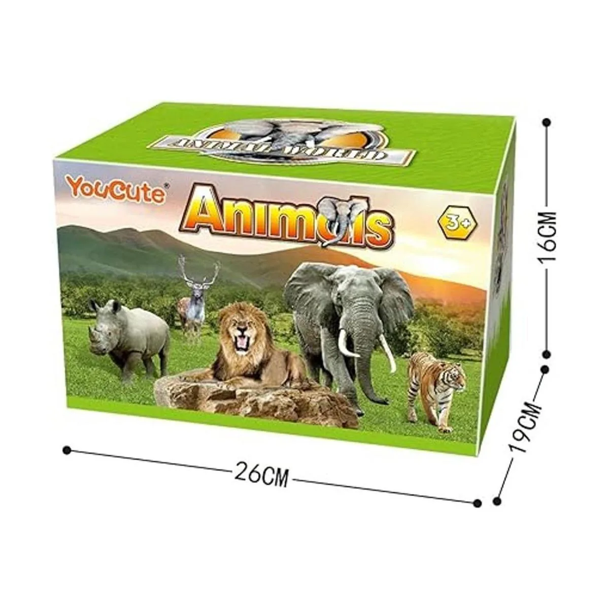 Tipo de animal: incluyendo león, tigre, elefante, cebra, jirafa, pantera, bisonte, camello, oso marrón, lobo, hippo, rinoceronte, hiena, gorila y cocodrilo.