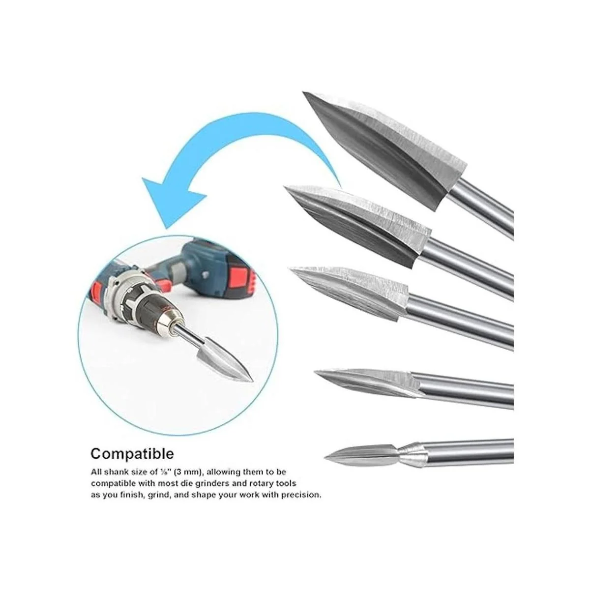 Amplia compatibilidad: estas brocas de grabado de madera son de 0.118 in de tamaño de vástago, que son compatibles con la mayoría de molinillos y herramientas rotativas; puedes instalarlas como cualquier otra broca típica y hacer que acabes, moler y dar forma a tu trabajo más eficazmente