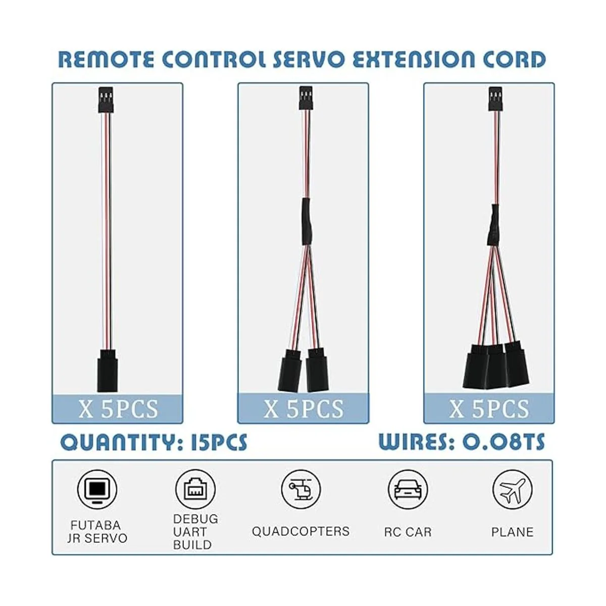 Obtendrás: el paquete viene con 15 cables de extensión servo, incluyendo 5 piezas de cable JST macho a hembra JR Futaba, 5 piezas de arnés en Y macho a 2 hembra, 5 piezas de arnés en Y macho a 3 hembras, cantidades suficientes y múltiples estilos pueden satisfacer tus diferentes necesidades de uso