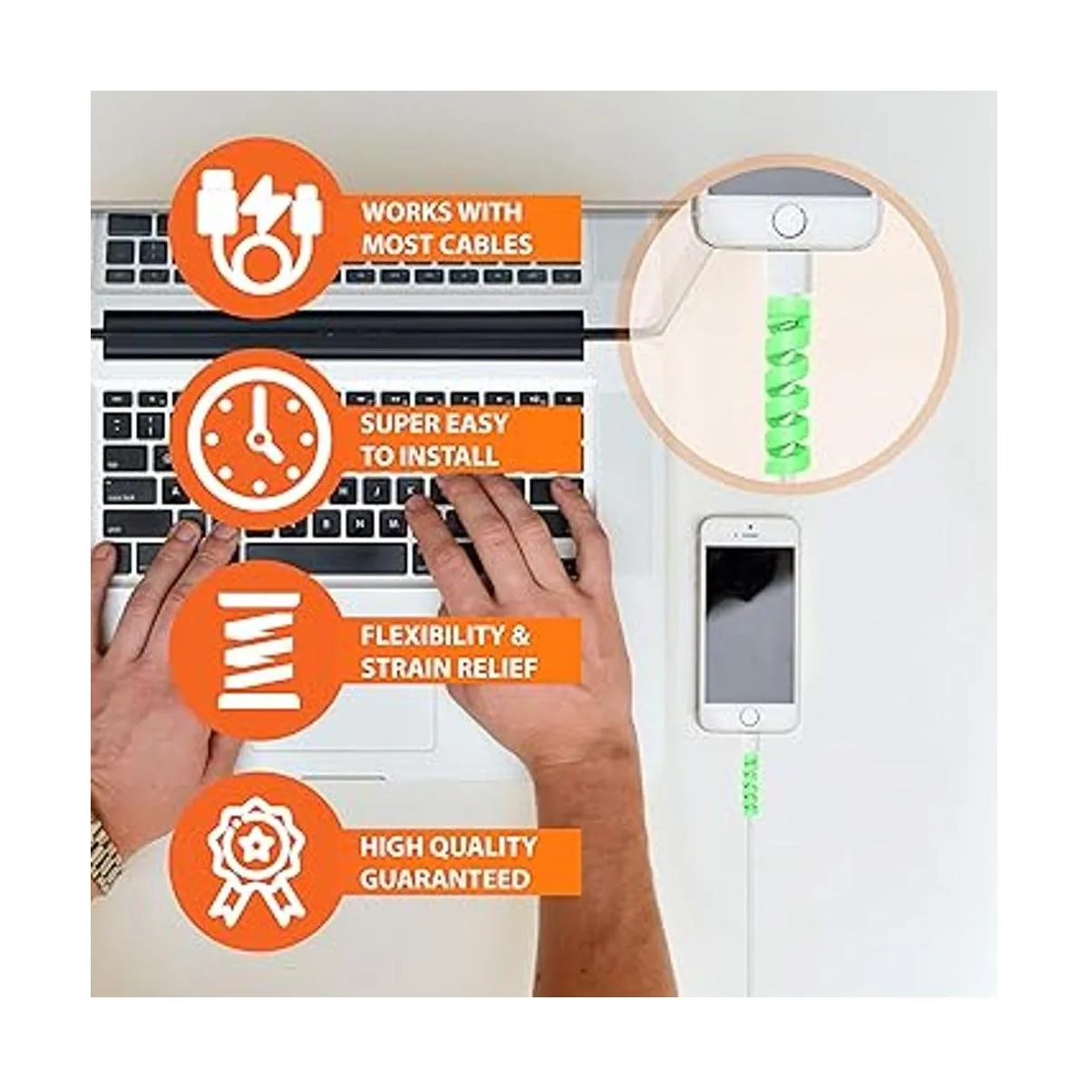 Protege los cables: Cansado de cambiar cables borken una y otra vez Entonces el juego de protectores de cable en espiral es exactamente lo que necesitas. Los protectores de cable en espiral están hechos de silicona de alta calidad, súper flexible y duradero, utilizado para proteger los extremos del cable de roturas o desprendimientos.