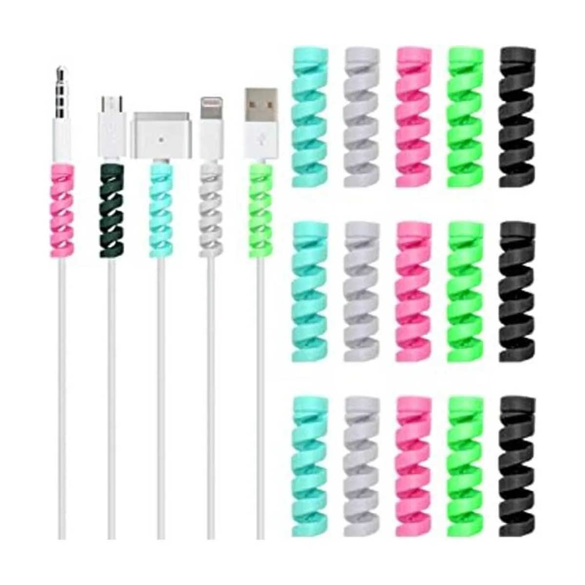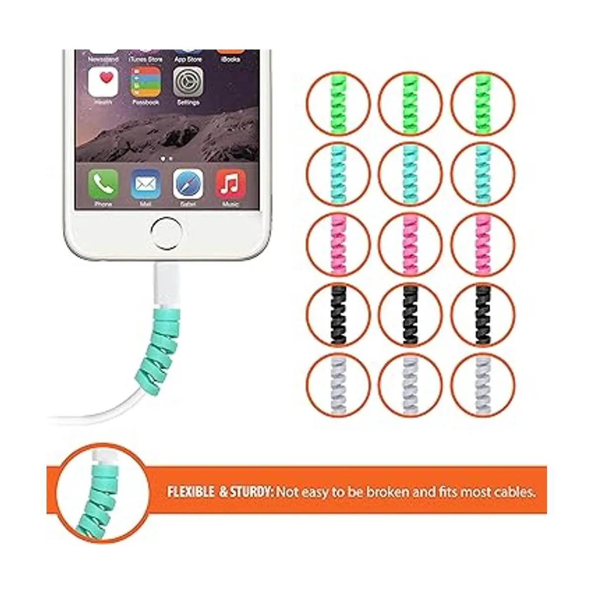15 unidades de 5 colores surtidos flexibles en espiral de cable de carga protector de cable organizador de cable de tubo accesorios cargador Saver para iPhone, MacBook, USB, PC, teléfonos celulares, ordenador, portátil