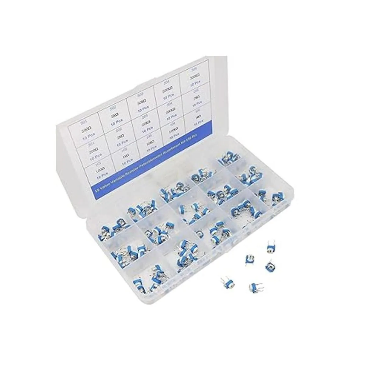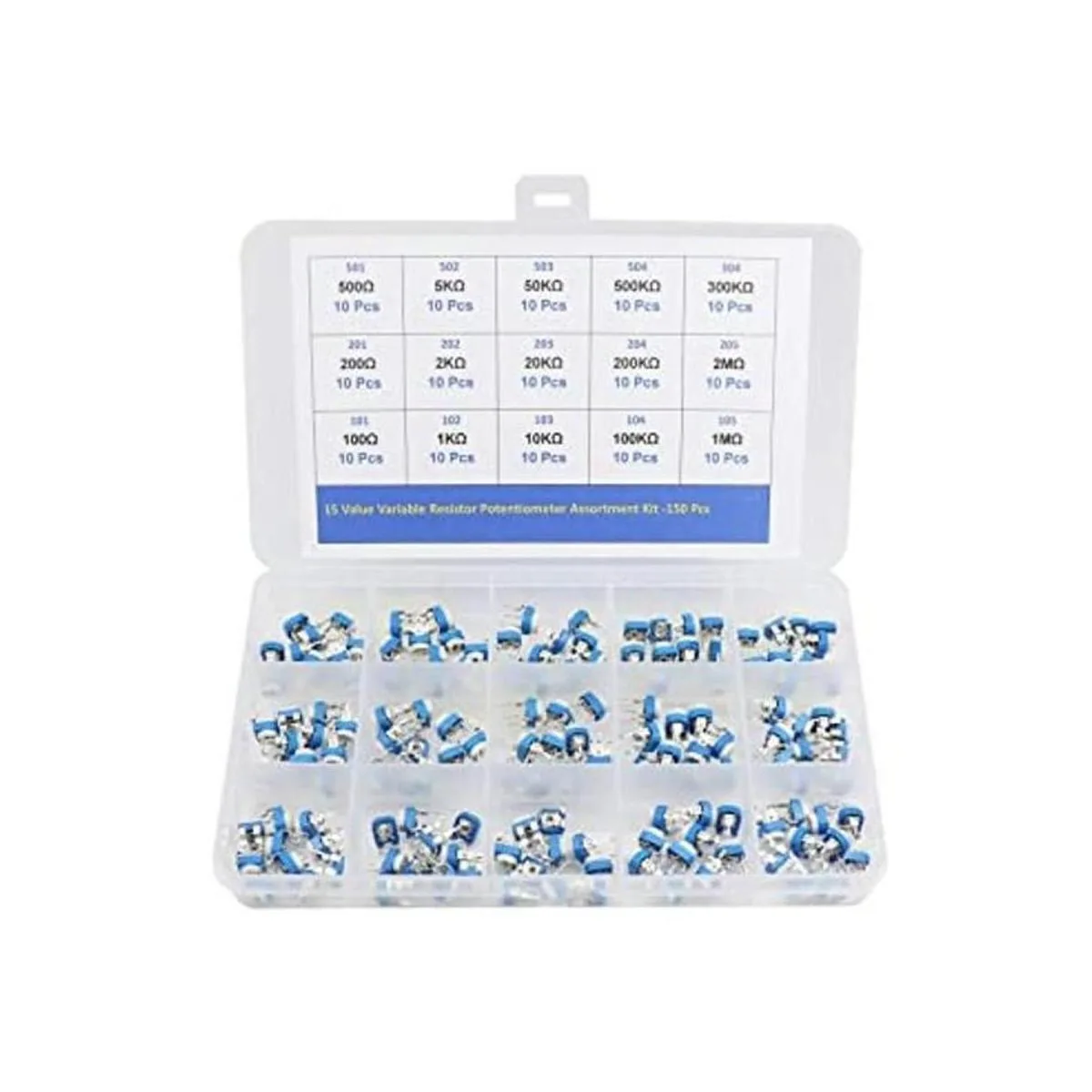 15 valores, resistencias variables 100 ohmios6.6 ft ohmios, cortador variable, potenciómetro, surtido de 150 piezas.