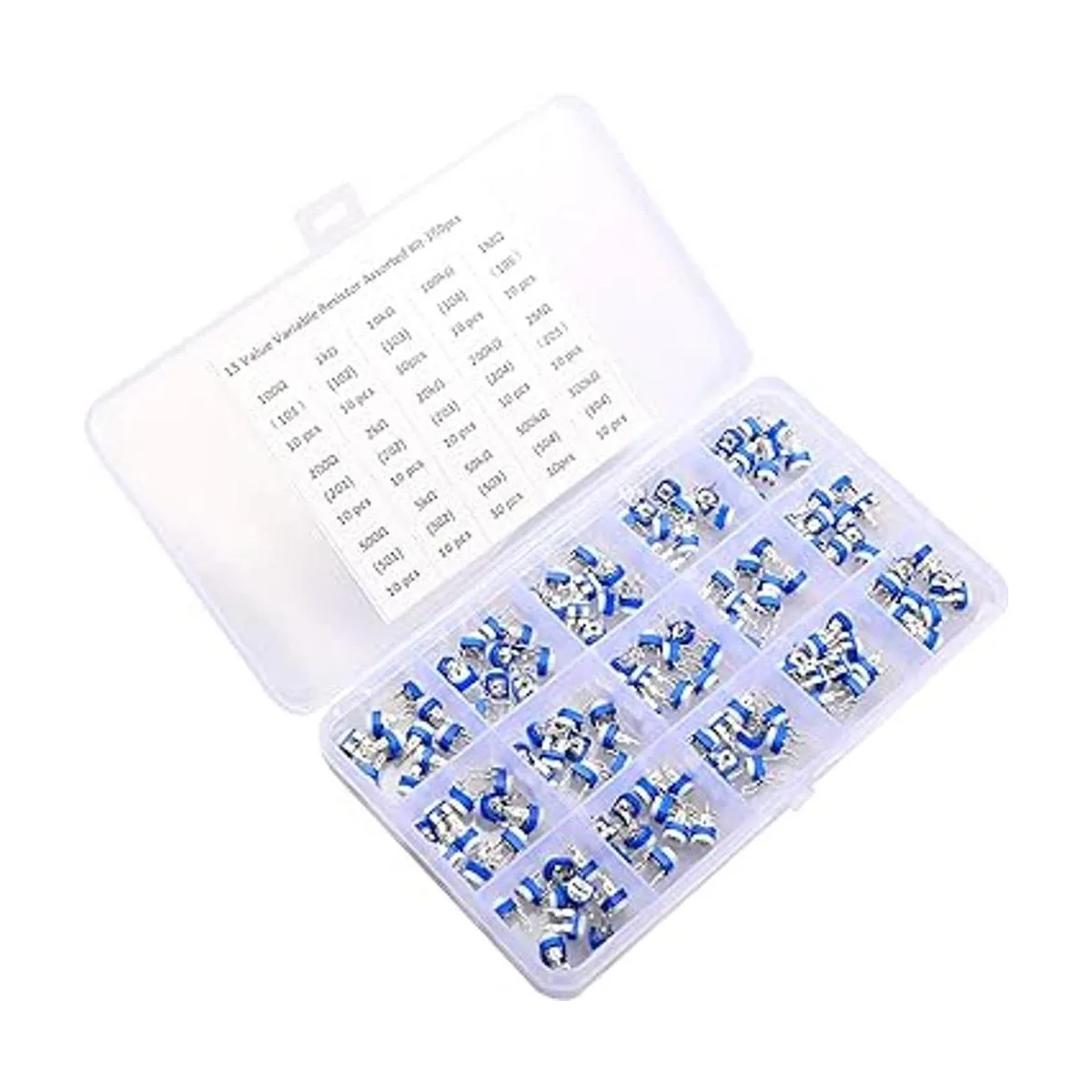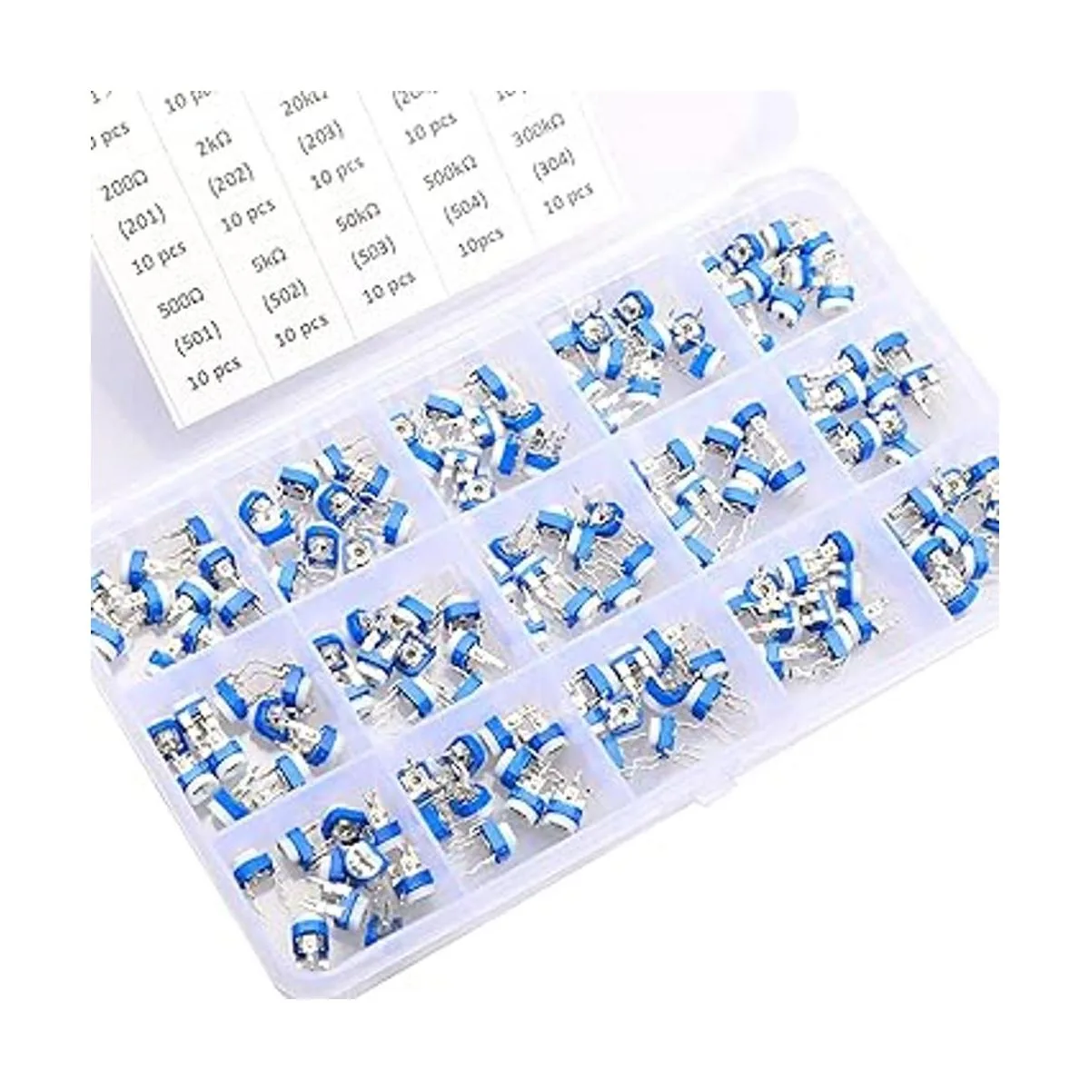 Tipo de paquete: 15 valores, 100, 200, 500, 1K, 2K, 5K, 10K, 20K, 100K, 200K, 300K, 500K, 1M, 2M potenciómetro