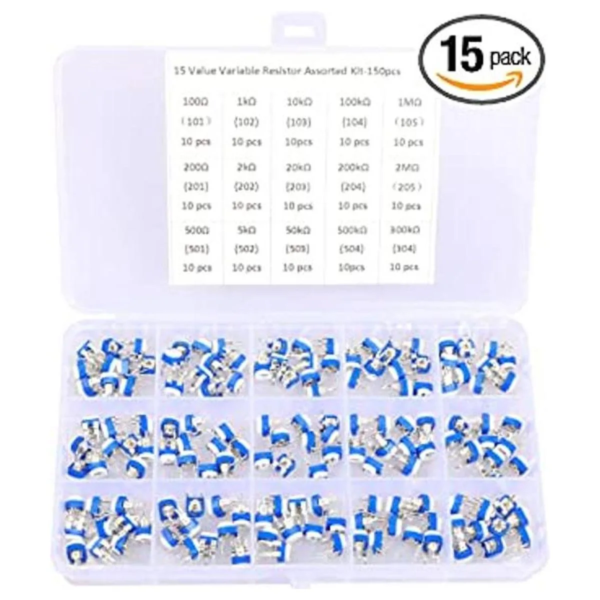 Cantidad del paquete: kit surtido de resistencias variables, 15 valores, 150 potenciómetros