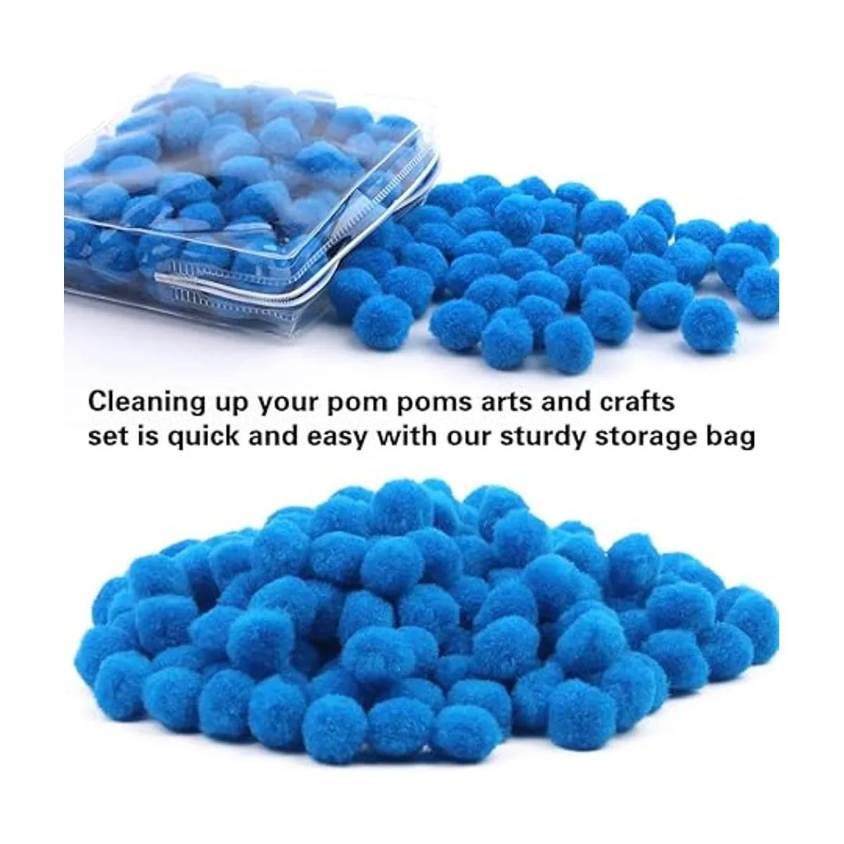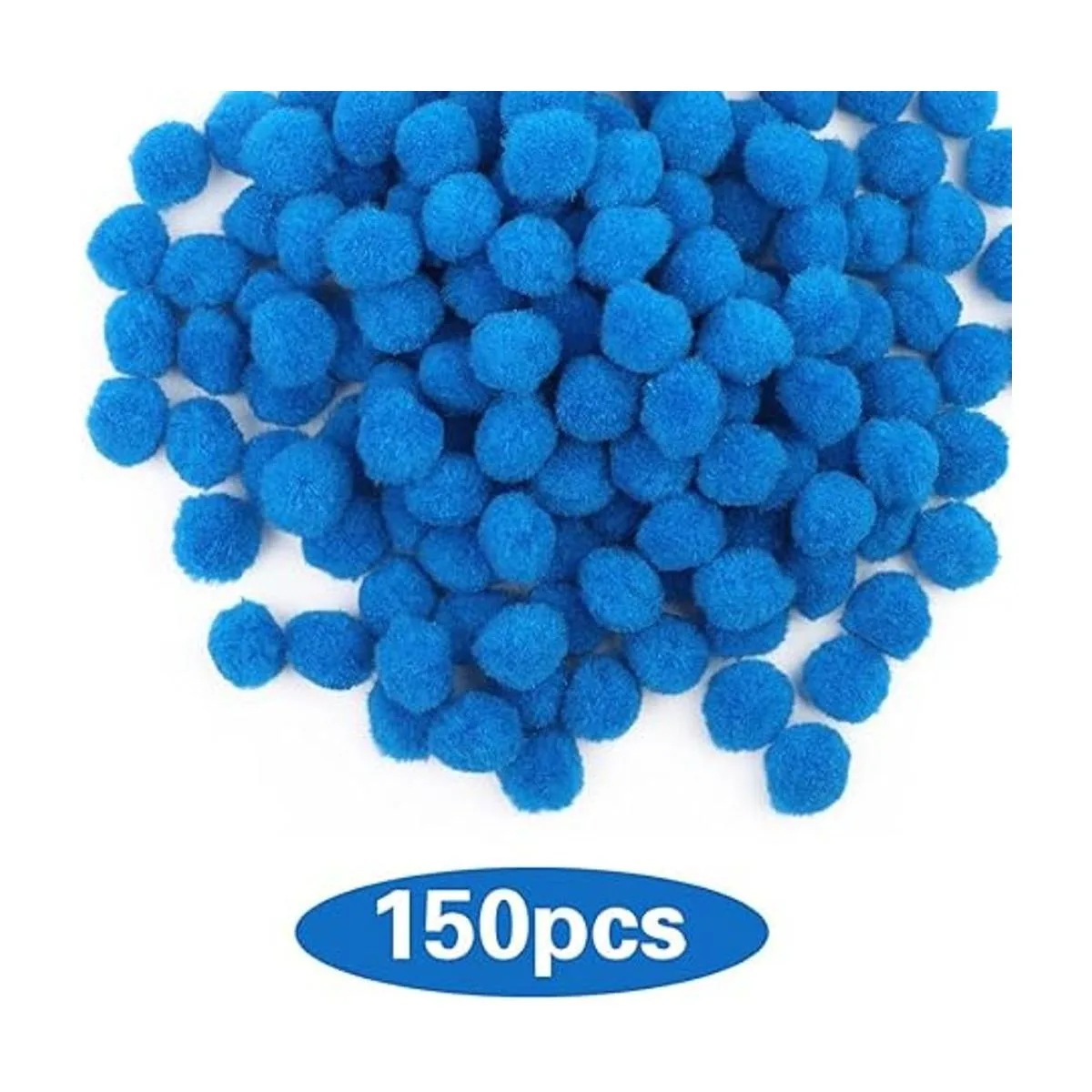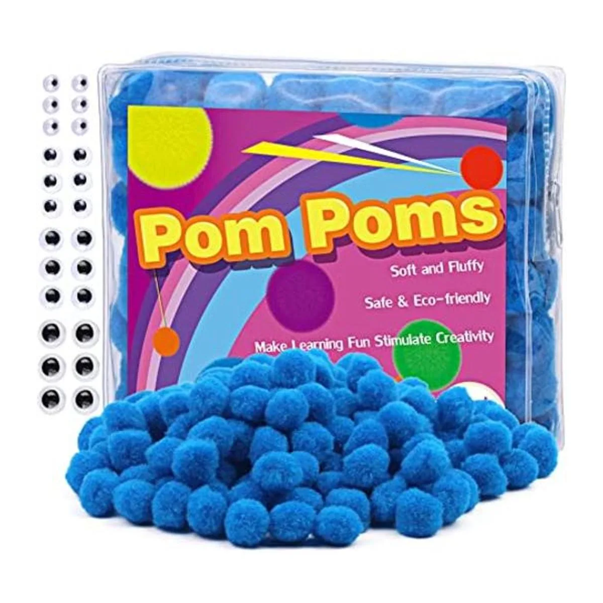 Juego de pompones para manualidades: recibirás 150 pompones azul claro con 24 ojos de plástico autoadhesivos, viene en una bolsa reutilizable, muy adecuado para hacer animales pequeños, manualidades creativas y decoraciones.