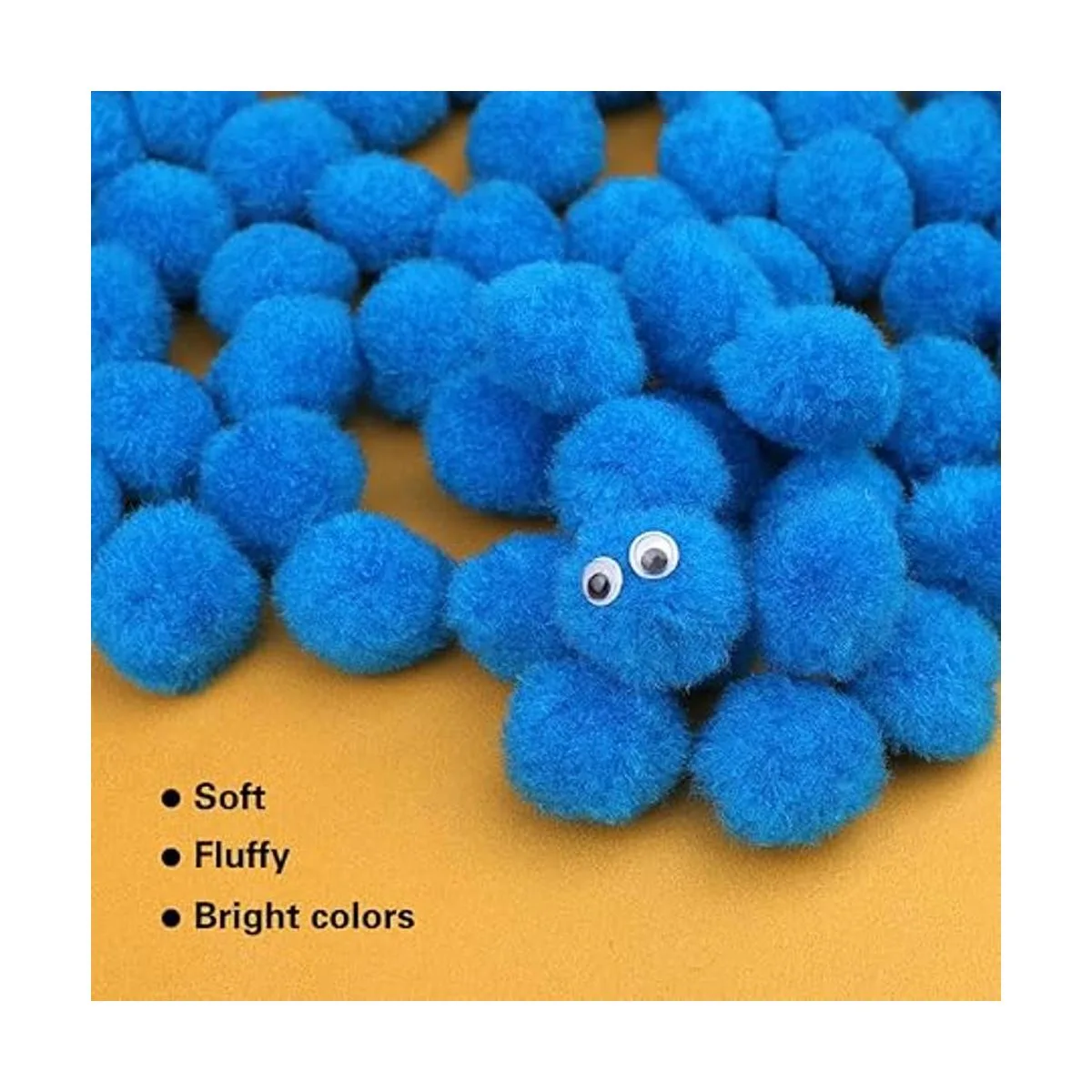 150 pompones azul claro, pompones de 1 pulgada con ojos autoadhesivos para manualidades, pequeñas bolas peludas para manualidades, manualidades, manualidades, manualidades, decoración creativa
