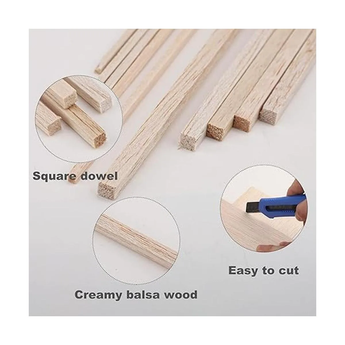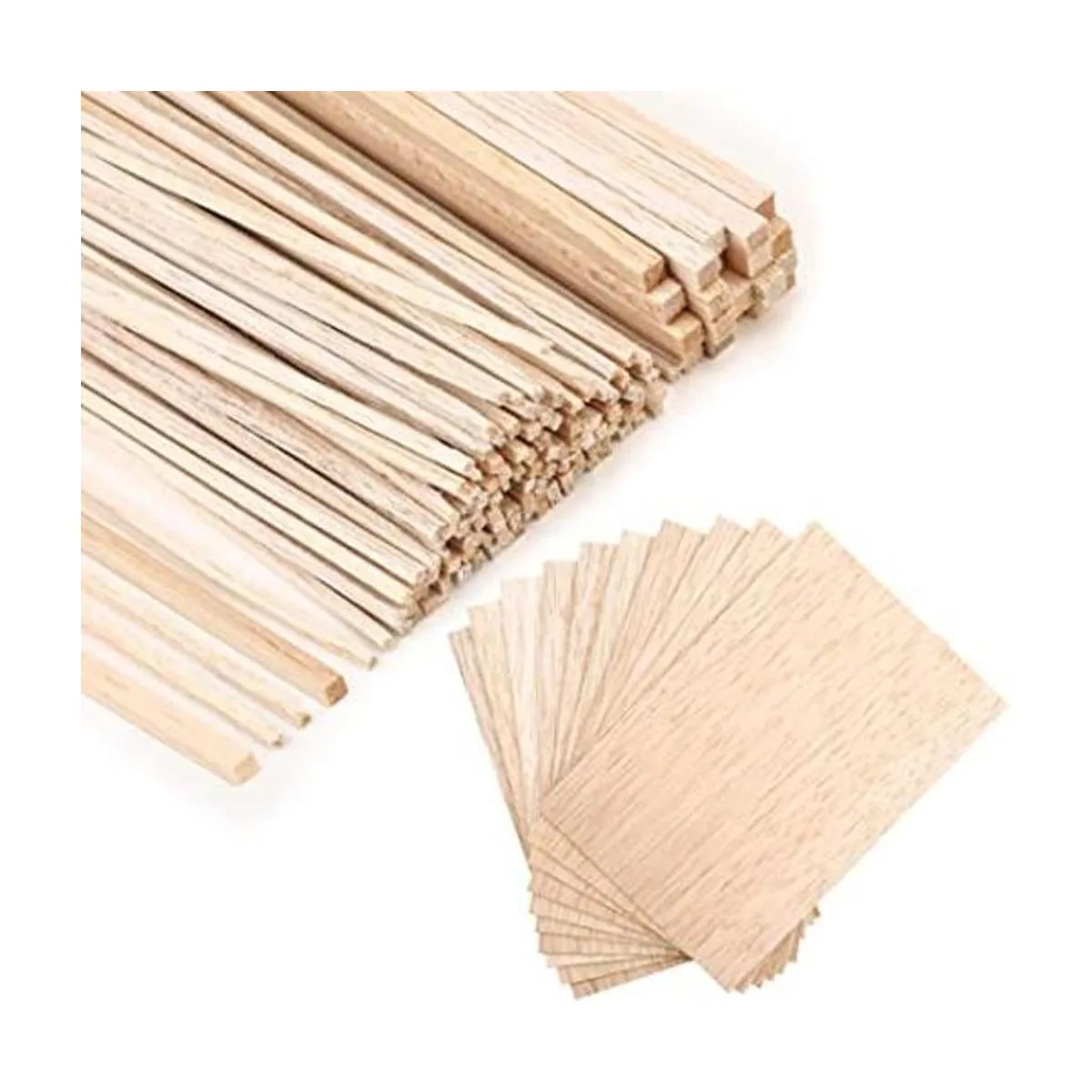 Material de madera fiable: las varillas cuadradas para manualidades y las hojas de madera finas son de madera balsa ligera y de alta calidad, que es conveniente para tu operación; las varillas de madera y las hojas de madera se pueden cortar en varias formas y tamaños de acuerdo a tus necesidades.