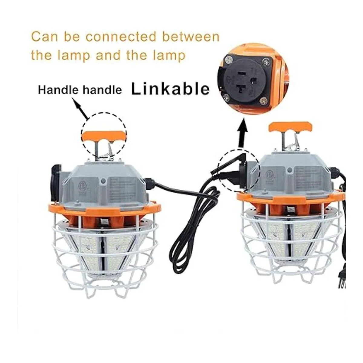 150 vatios LED de trabajo temporal luz de día blanca 5000K 22250Lm lámpara colgante portátil impermeable trabajo iluminación cubierta protectora de acero inoxidable para la construcción al aire libre luces de bahía alta