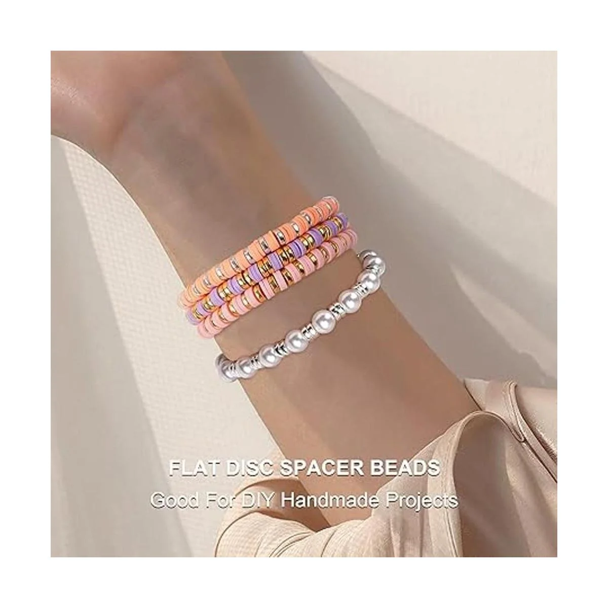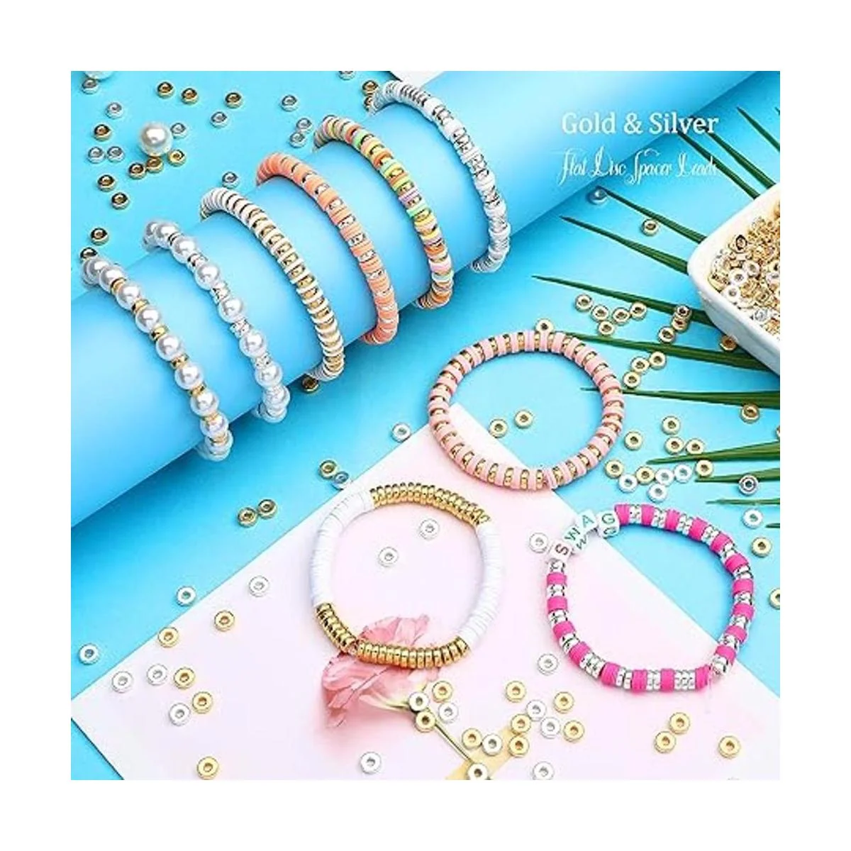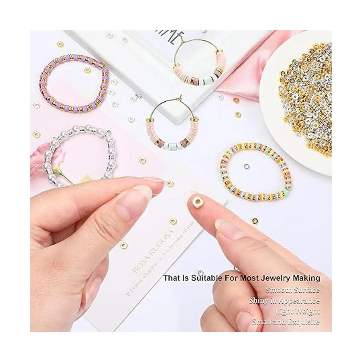 1500 cuentas espaciadoras redondas planas de 0.236 pulgadas 0.236 in, cuentas sueltas para hacer joyas, pulseras, collares, aretes, suministros de manualidades, oro y plata